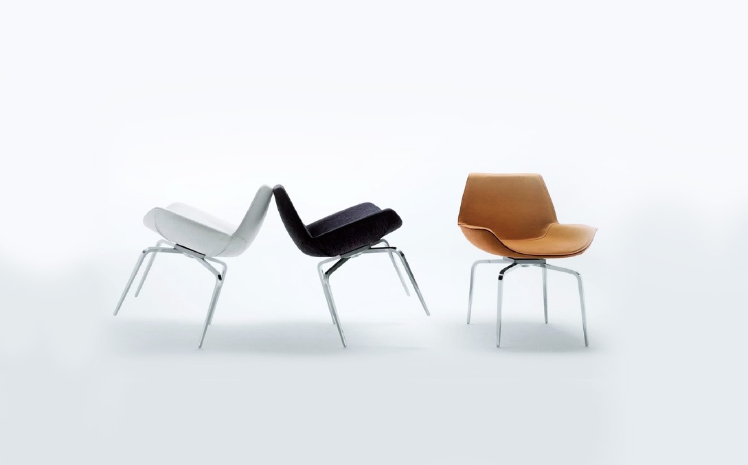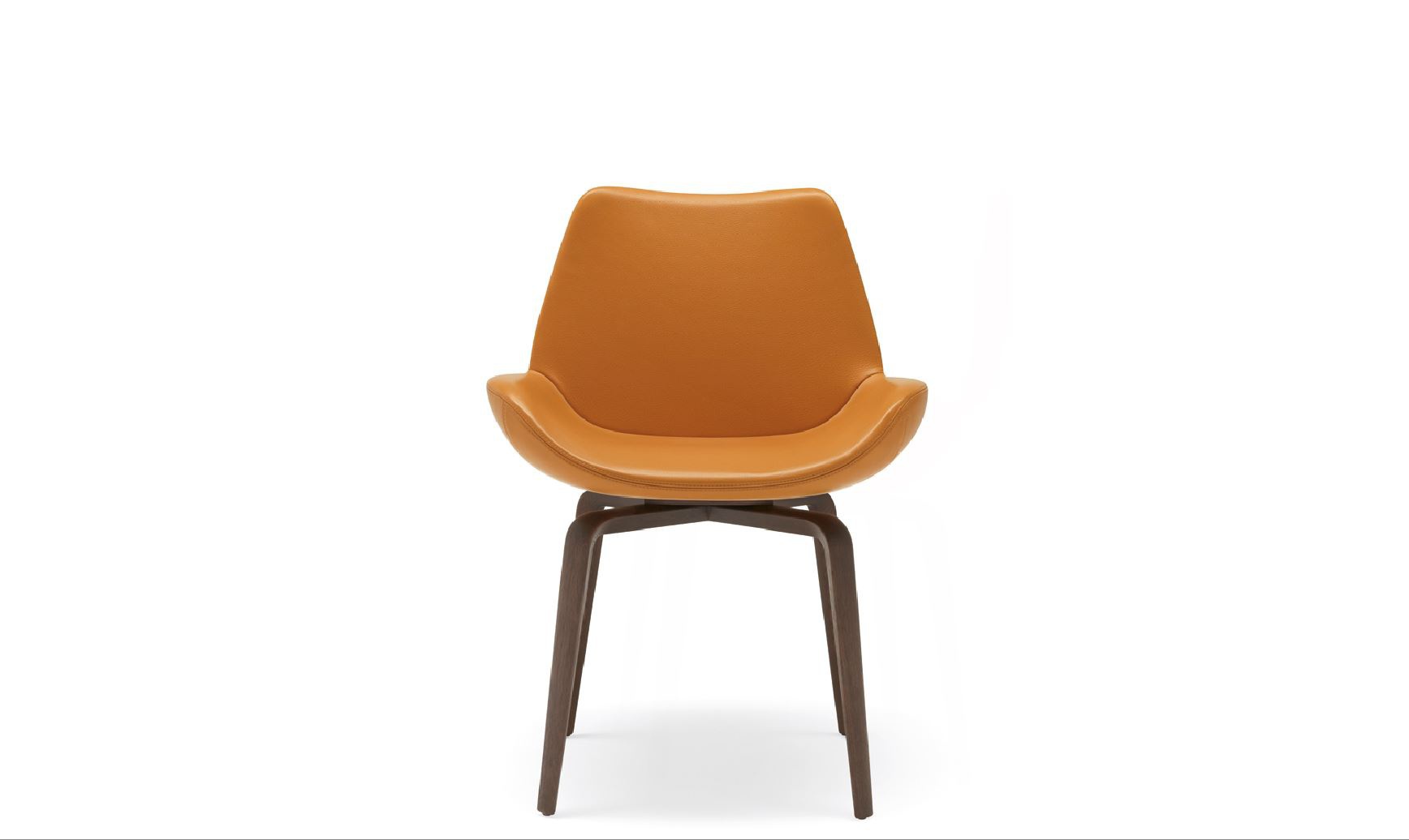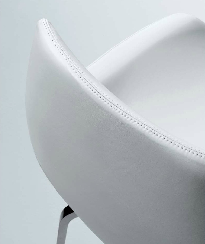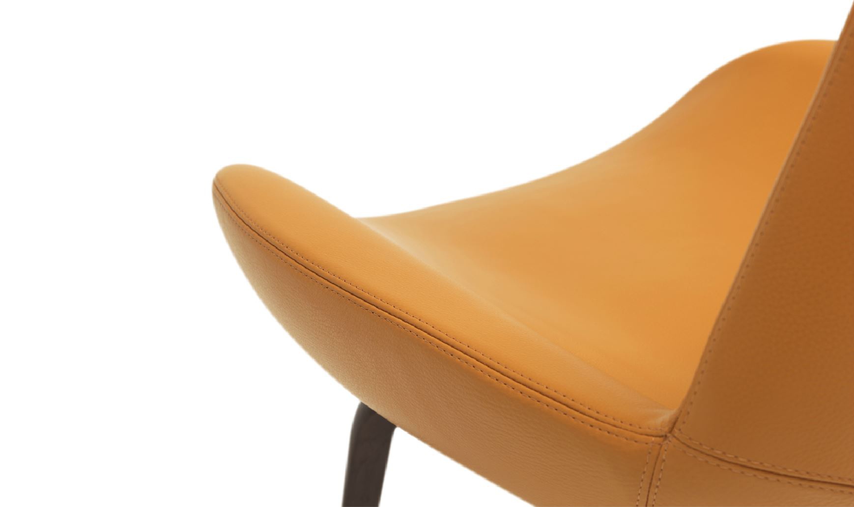 'archetto chair from Italian manufacturer MisuraEmme. Product frame made of wood or glossy / lacquered aluminium. Seat and backrest on a metal frame, the filler is cast in the form of foam. Upholstery — cloth / leather / thick leather. Wide color range: orange, white, black, etc., to choose from a catalog. Available with rotating base. For those who love the avant-garde.