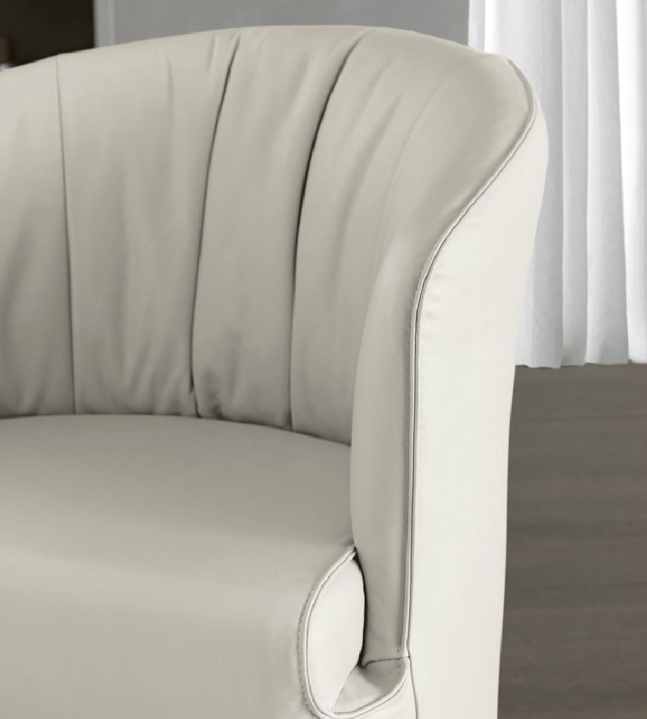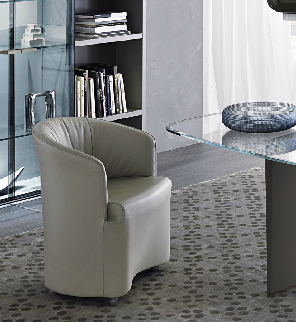 The Opera Dinner chair from Italian manufacturer MisuraEmme. The usual elegant classical form in a modern interpretation perfectly embodied in this model. Frame made of wood covered with soft leather/eco-leather/textile. The seams highlight the silhouette of the product. Filler - polyurethane foam. Due to the high backrest and swivel castors this model is perfect for a meal at the large dining table.