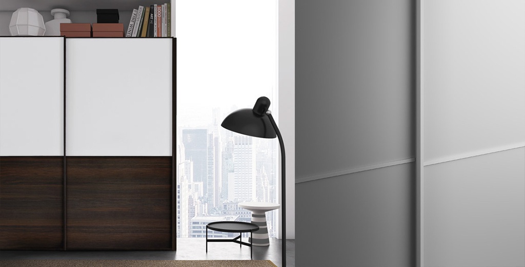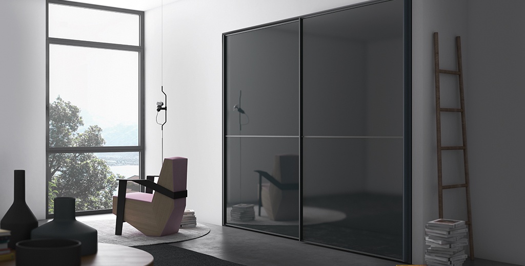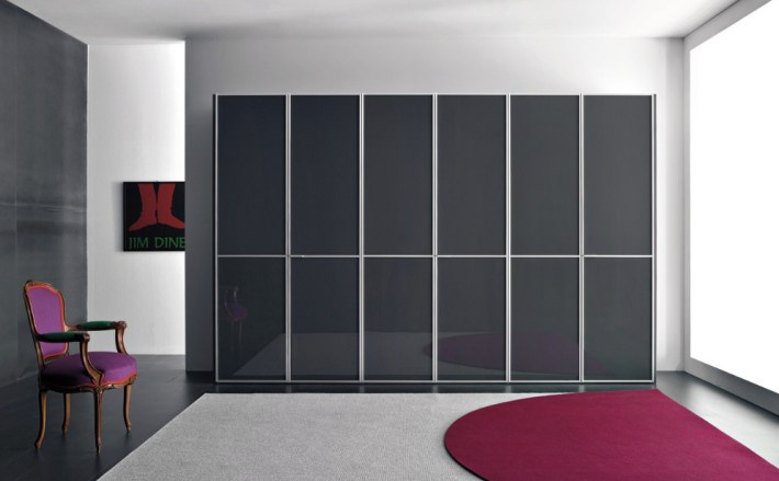 Link Cabinet from Pianca Italian manufacturer. furniture made of natural wood. Wardrobe with six hinged door with glass panels and shiny dark grey frames. Available in different finishing of glass, oak or cherry. The natural warmth of wood, the variety of lacquered finishes. Different color options are monochromatic and contrasting composition of classical elegance or contemporary style.