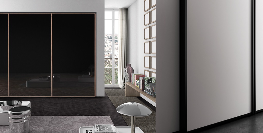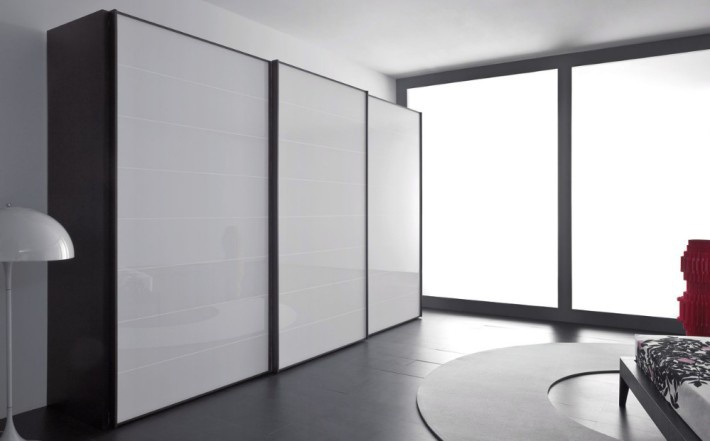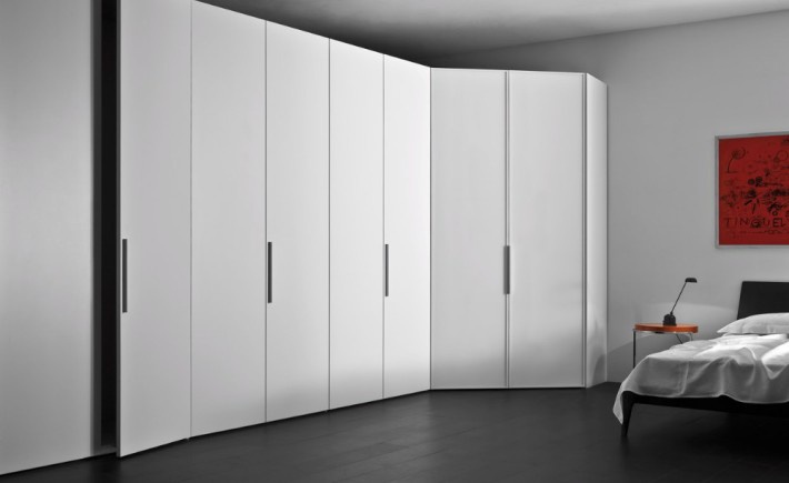 The wardrobe Cornice from the Italian manufacturer Pianca. The frame rack is made of oak and aluminium, Matt lacquered. Elegant wardrobe with hinged or sliding doors. Various options available in different finishing of glass, oak or cherry, or lacquered. Color by the number of items presented model in white. Modern style.