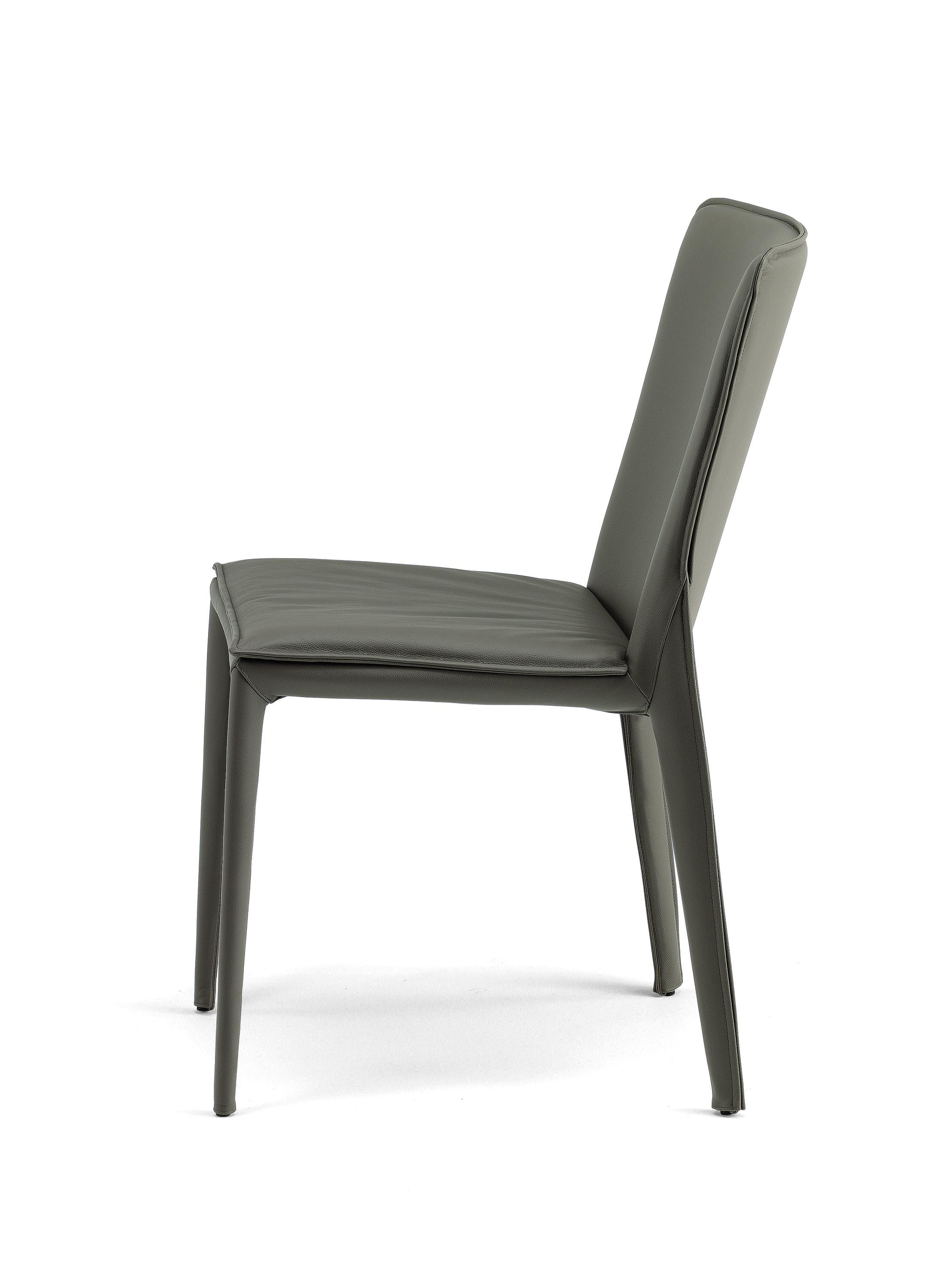 Chair with upholstered Vittoria from the Italian manufacturer Cattelan Italia. The frame and legs are made of metal with leather upholstery. The filler is polyurethane foam. The model is made in modern style. Colours in stock.