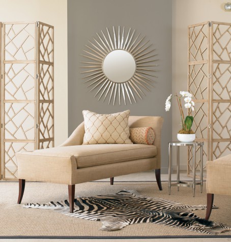 The couch is from an American manufacturer Sherrill Furniture. Designer daybed sofa, in the style of postmodernism, it is easy to put accents in the living room get an attractive recreation area. Frame and saber legs of the couch are made of wood. The seat is a removable feature stitched mattress, headboard figure. There are two removable cushions - rectangular and in the form of a roller, with contrasting patterns. Textile upholstery in light beige colors; options for upholstery you can choose in the catalog of the manufacturer. By constantly improving furniture company Sherrill Furniture for more than fifty years has been a leader in the manufacture of quality products for the home.