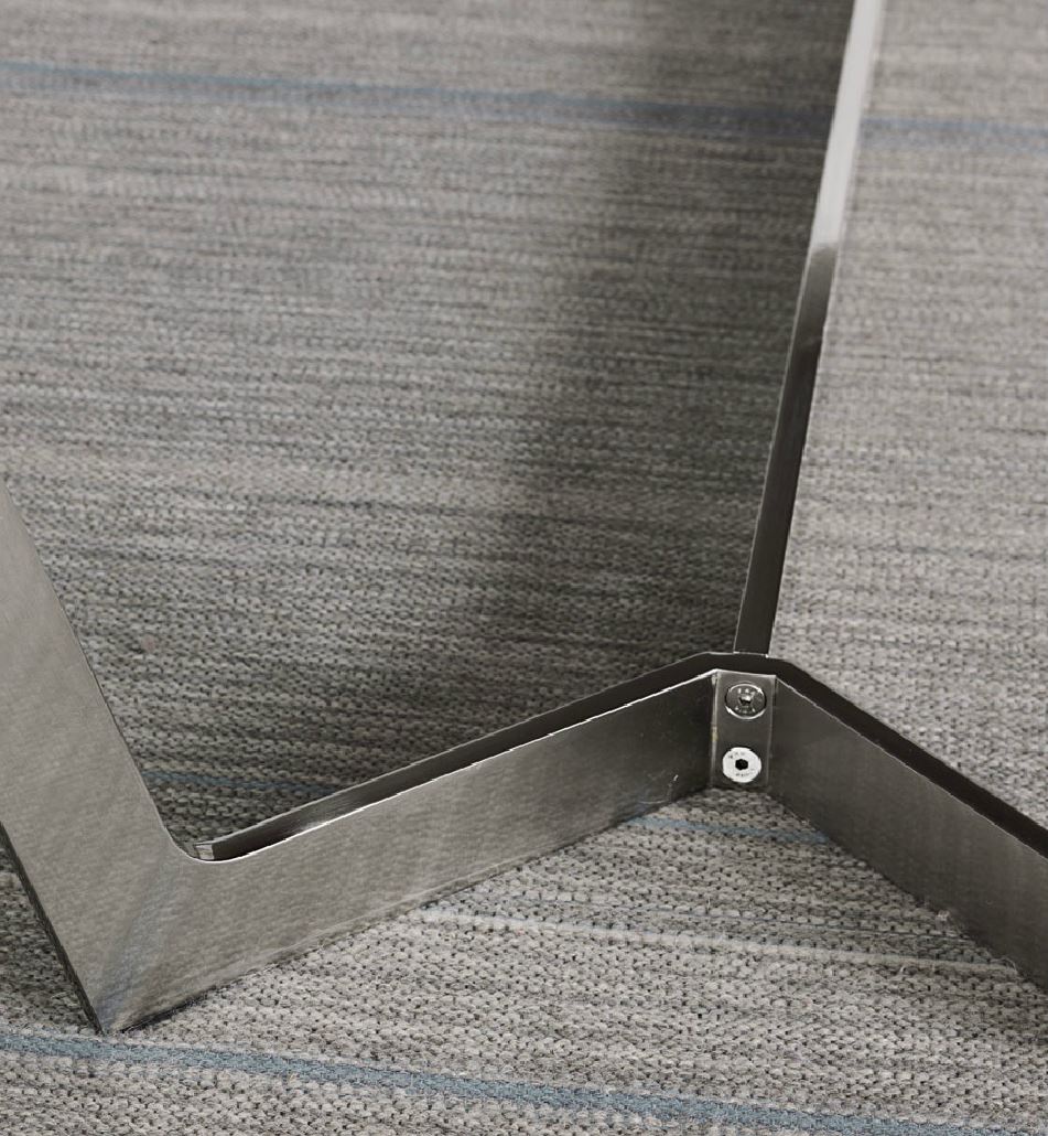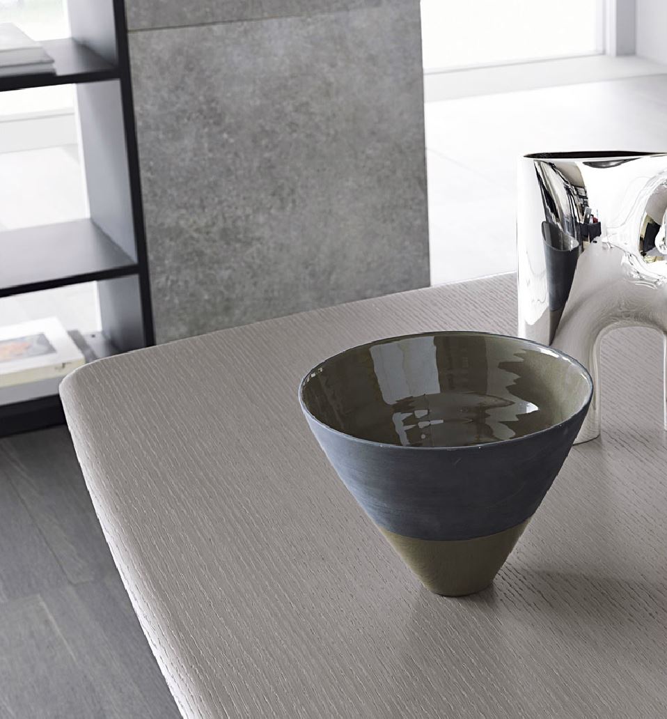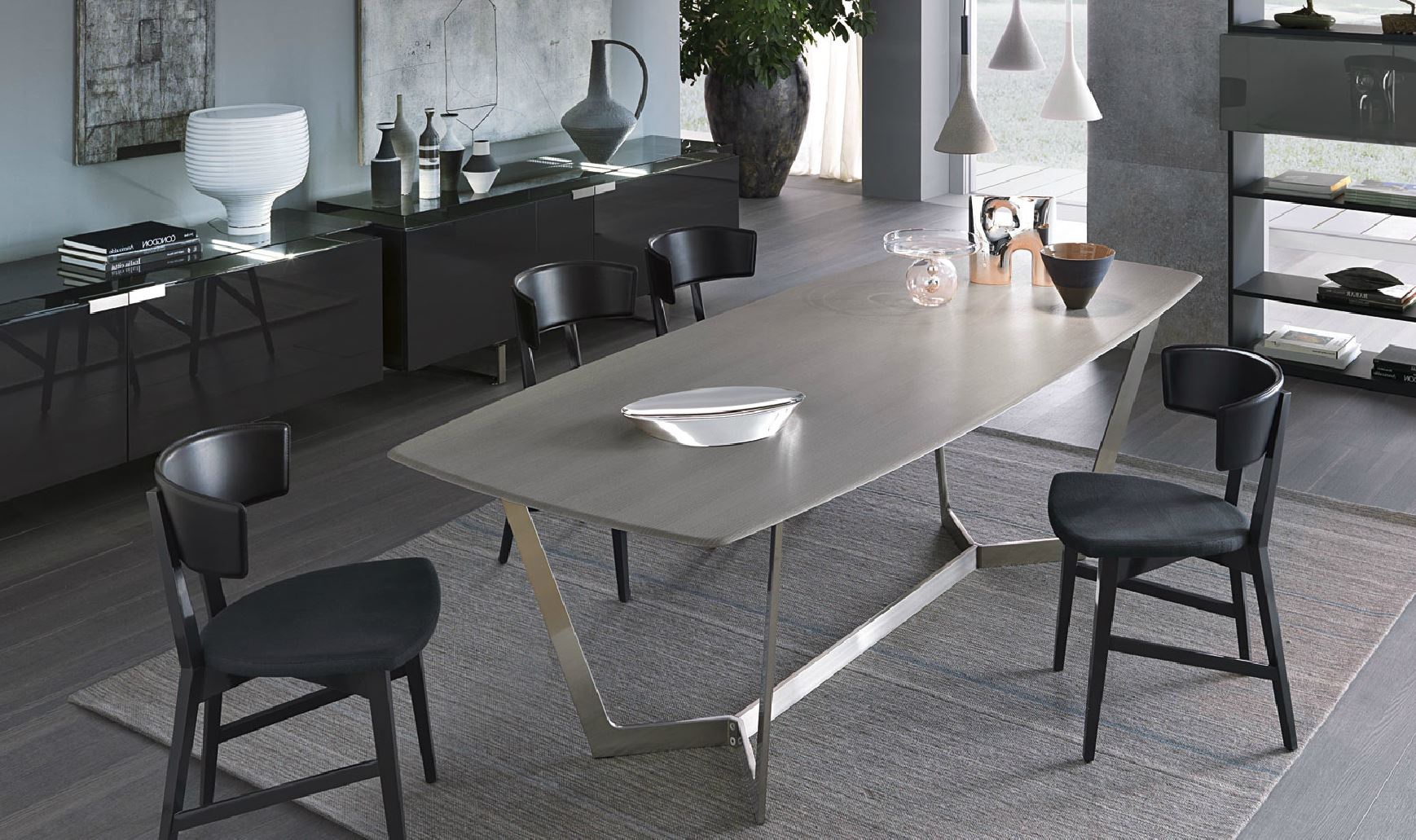The Virgo dining table from Italian manufacturer MisuraEmme. The model is made in modern style. The table top is made of oak, rectangular, with beveled corners. Finish Cenere lacquer. Bearing steel. Colors: grey, steel, you can choose the catalog of the manufacturer. A great choice for the modern dining room.