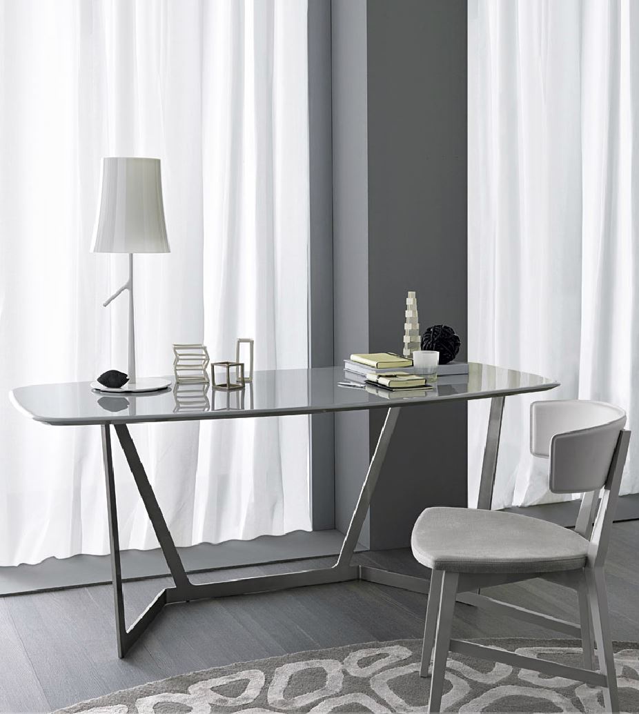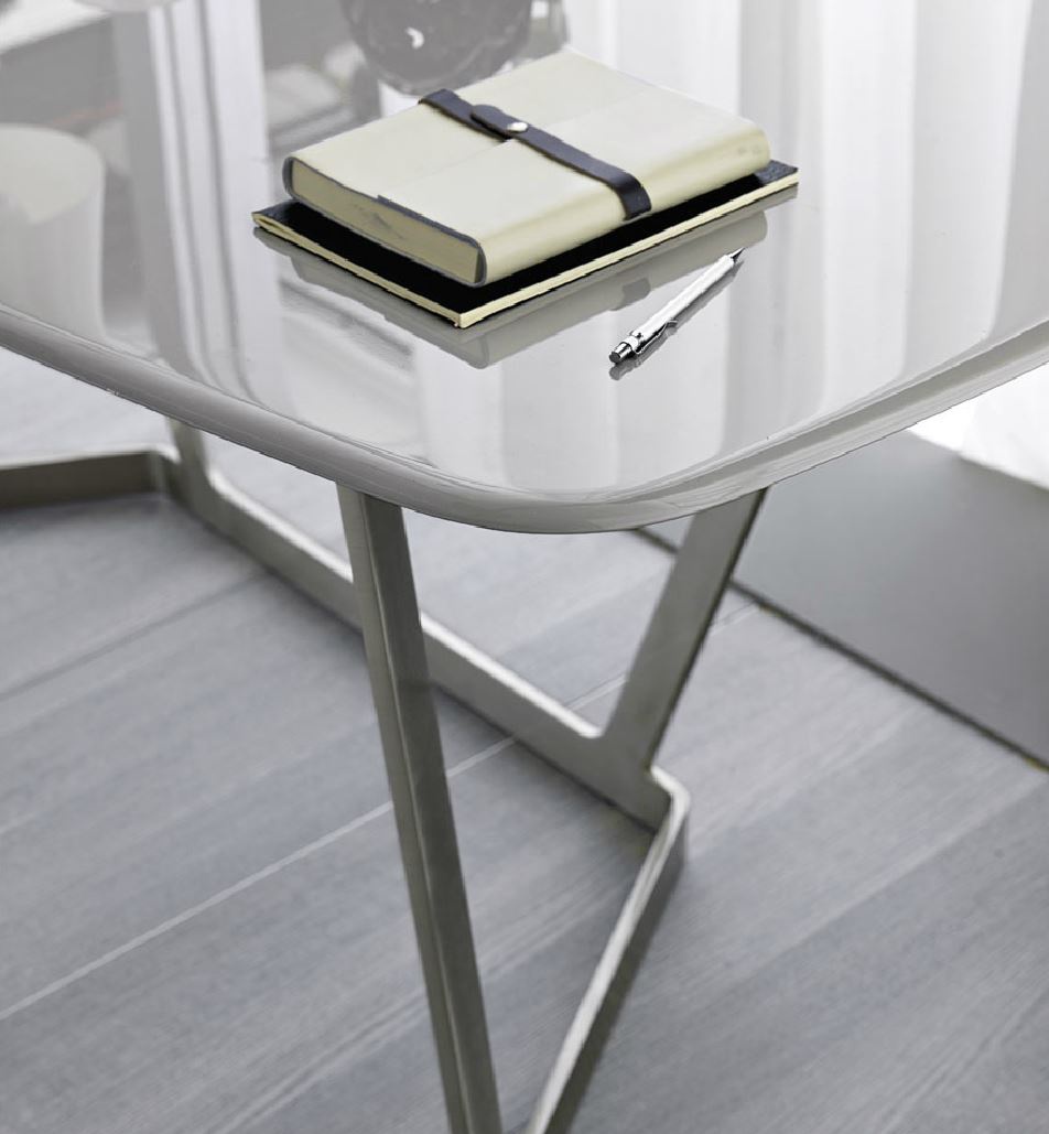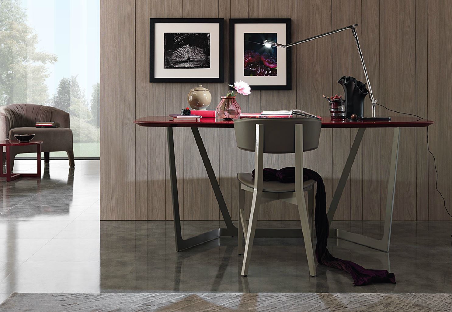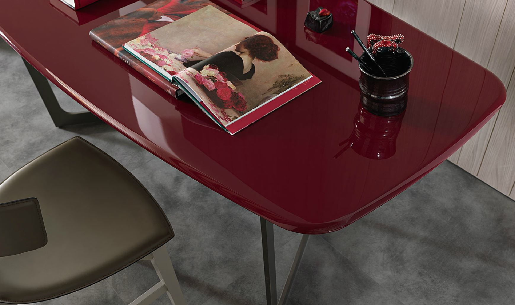Desk. from Italian manufacturer MisuraEmme. The model is made in modern style. The table top is made of natural wood, rectangular, with beveled corners. Finish: red glossy lacquer Caolino Fuoco and white. Bearing steel. Color scheme - to choose from in stock. An excellent choice for modern office.