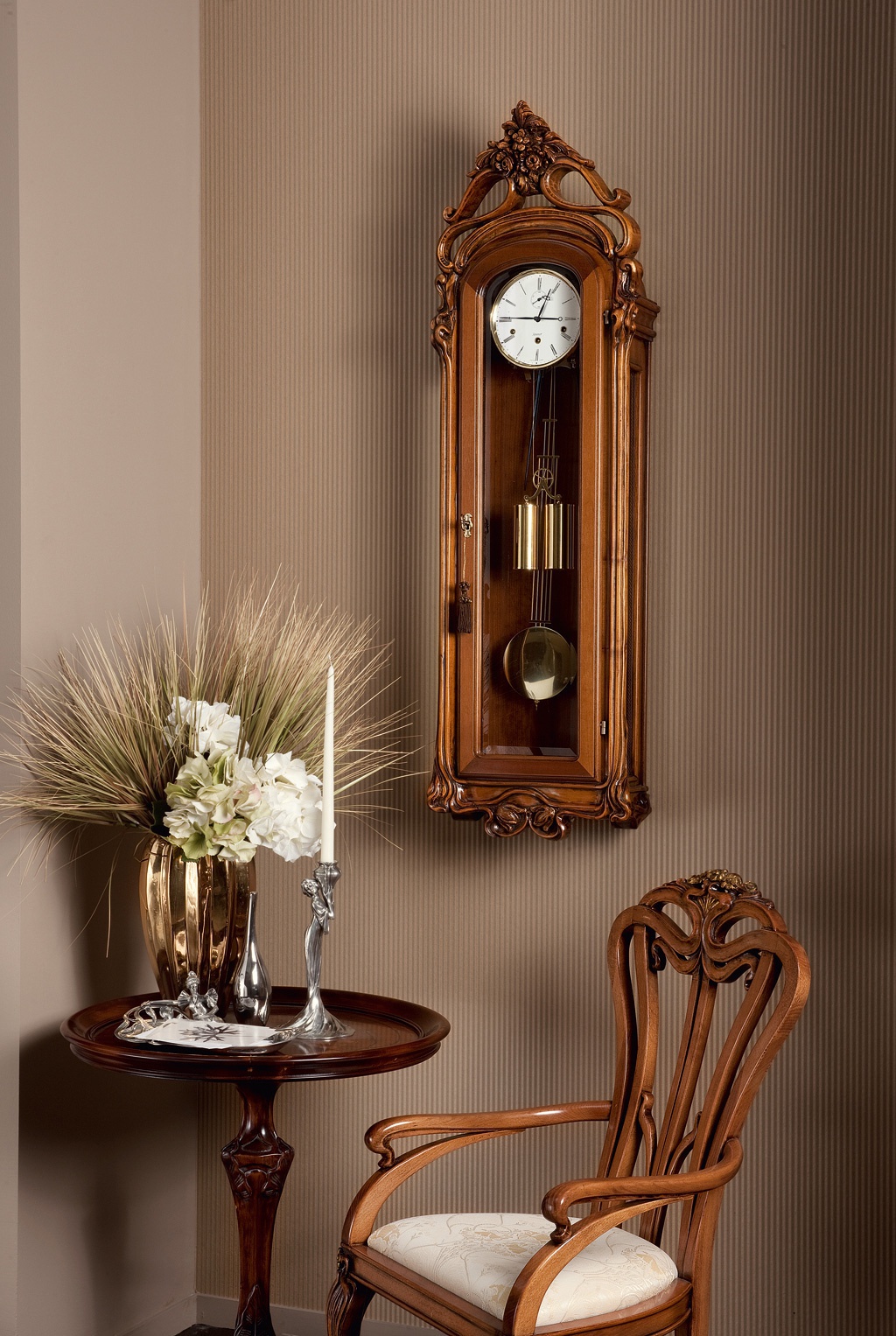 Watch Liberty from the Italian manufacturer Medea. Large wall clock with a case made of wood and glass door. The model is decorated with carved handmade decor. Finishing made with lacquer.
