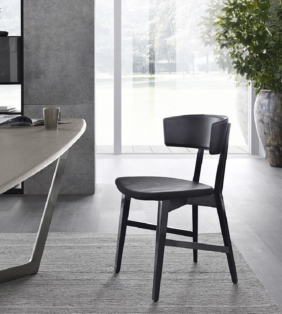 The Alina chair from Italian manufacturer MisuraEmme. The model is made in a classic style with a modern twist. Frame, legs made of solid wood. Finish - black/white Matt lacquer. But there is gloss in the palette to choose from, in stock. Upholstery - leather/textile/thick skin/ leather+textile. A great choice for modern and classic interiors.
