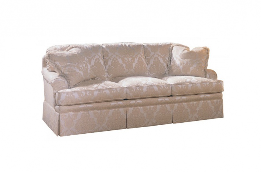 Three-seater sofa from the American manufacturer Sherrill Furniture. Elegant sofa traditional silhouette, designed in the English style, in the living room will create an atmosphere of comfort and ease. Frame of sofa made of wood, the backrest and seat form a three figure pillow, the relief of the sofa is accentuated by the stitching. Padded armrests, upholstery textile print; options for upholstery you can choose in the catalog of the manufacturer. The bottom of the sofa feature flowing skirts with a length 235 mm. the Sofa is complemented by two standard removable cushions, trimmed with fringe. By constantly improving furniture company Sherrill Furniture for more than fifty years has been a leader in the manufacture of quality products for the home.