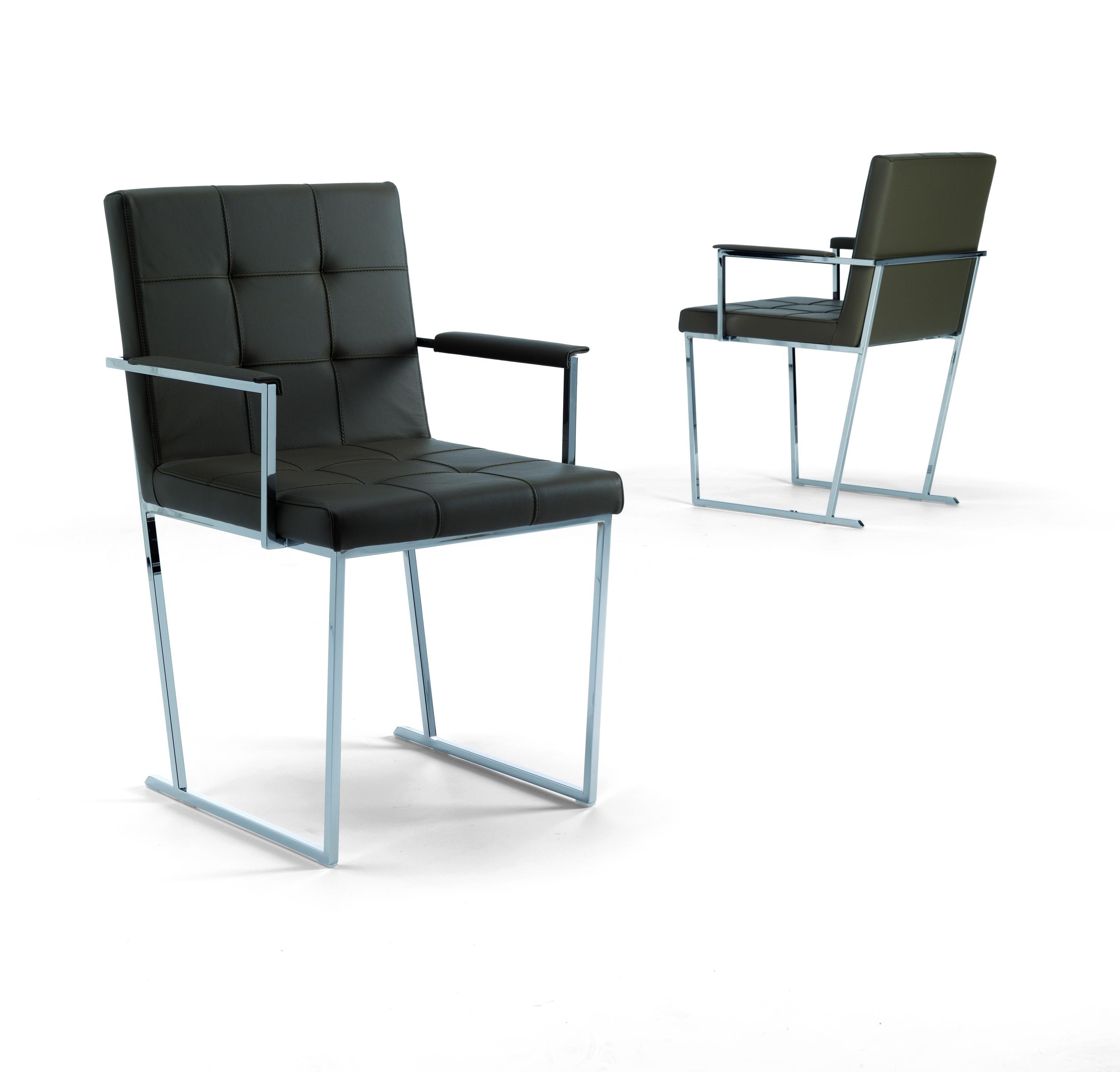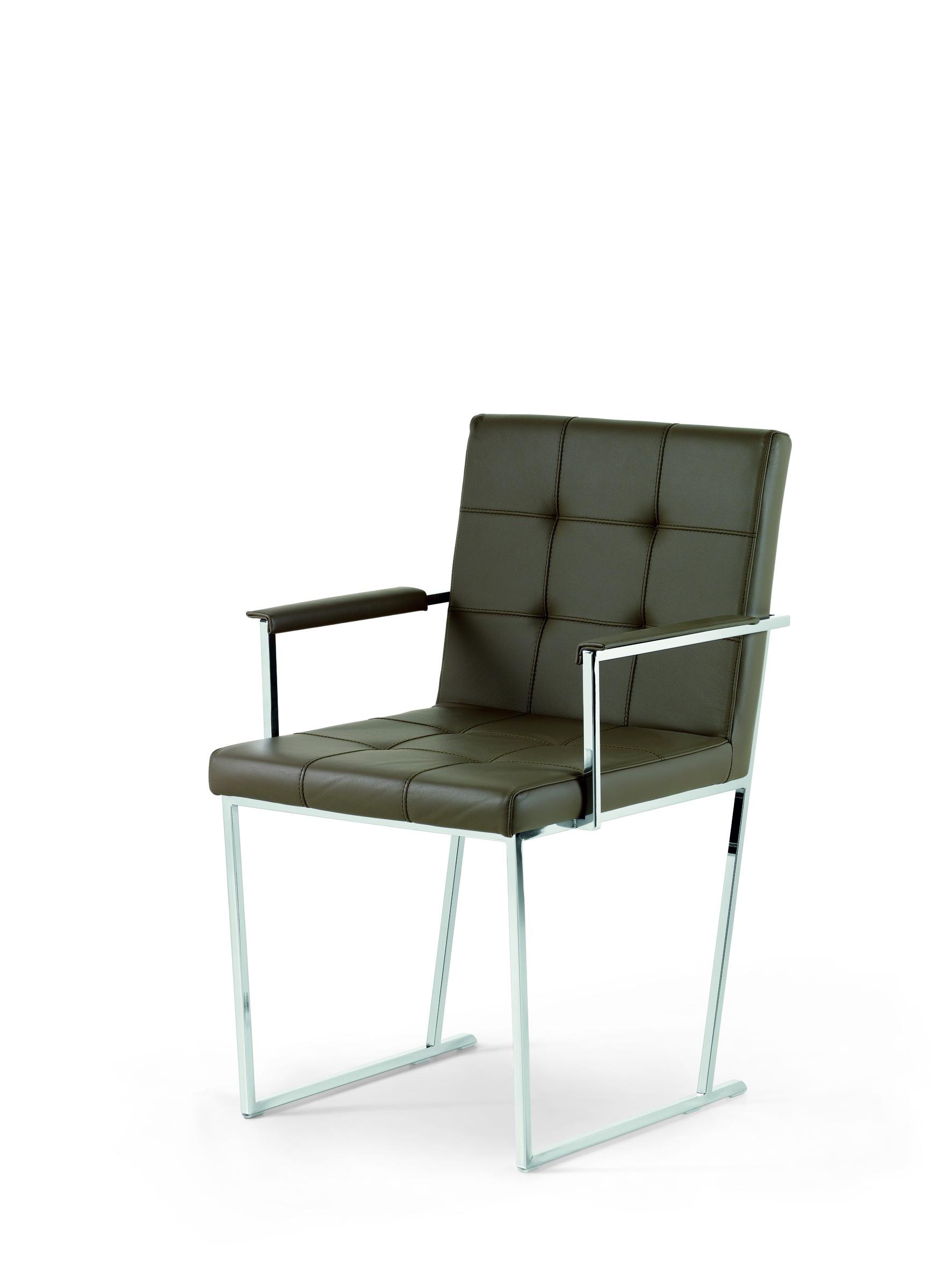 The Kate chair from the Italian manufacturer Cattelan Italia. The frame is made of stainless steel with a chrome surface. The seat and backrest soft upholstered leather / textile. The model with armrests. The modern design. A great choice for the interior. Colours in stock.