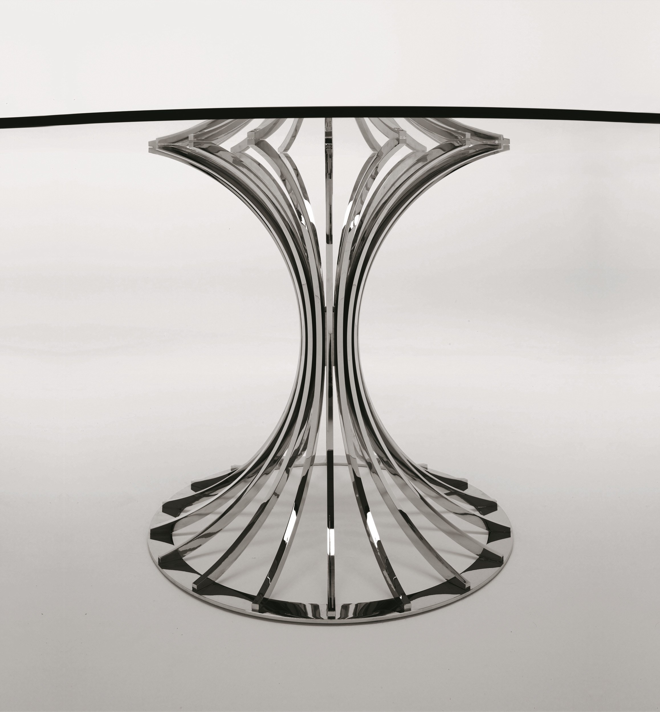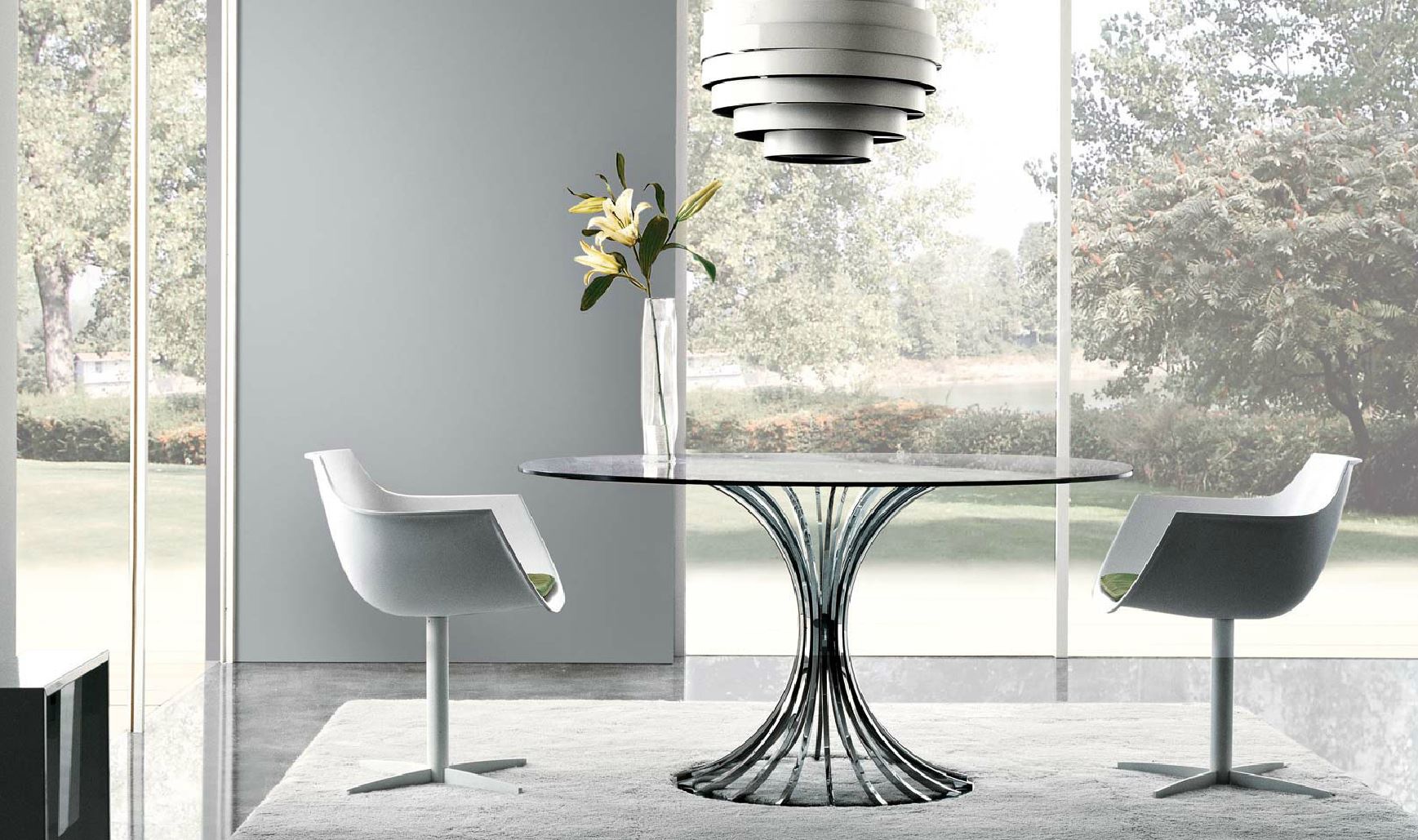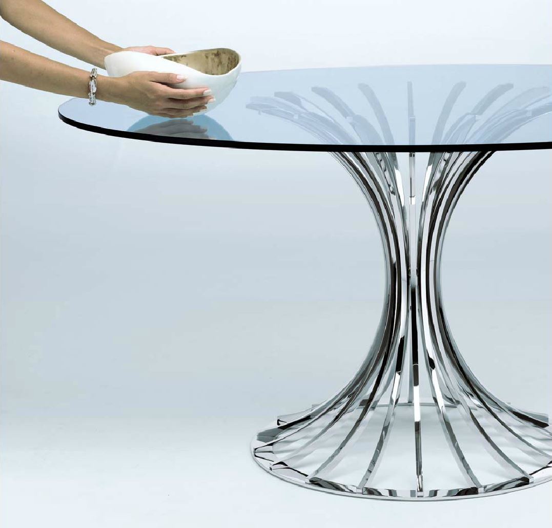 Bellafonte dining table from Italian manufacturer MisuraEmme. Frame products are made of chrome steel. The table itself is made of tempered glass. Each element is equipped with a device for adjustment of the worktop and attached to the base with screws. All parts are numbered. The product in a modern style, perfect choice for a stylish interior.