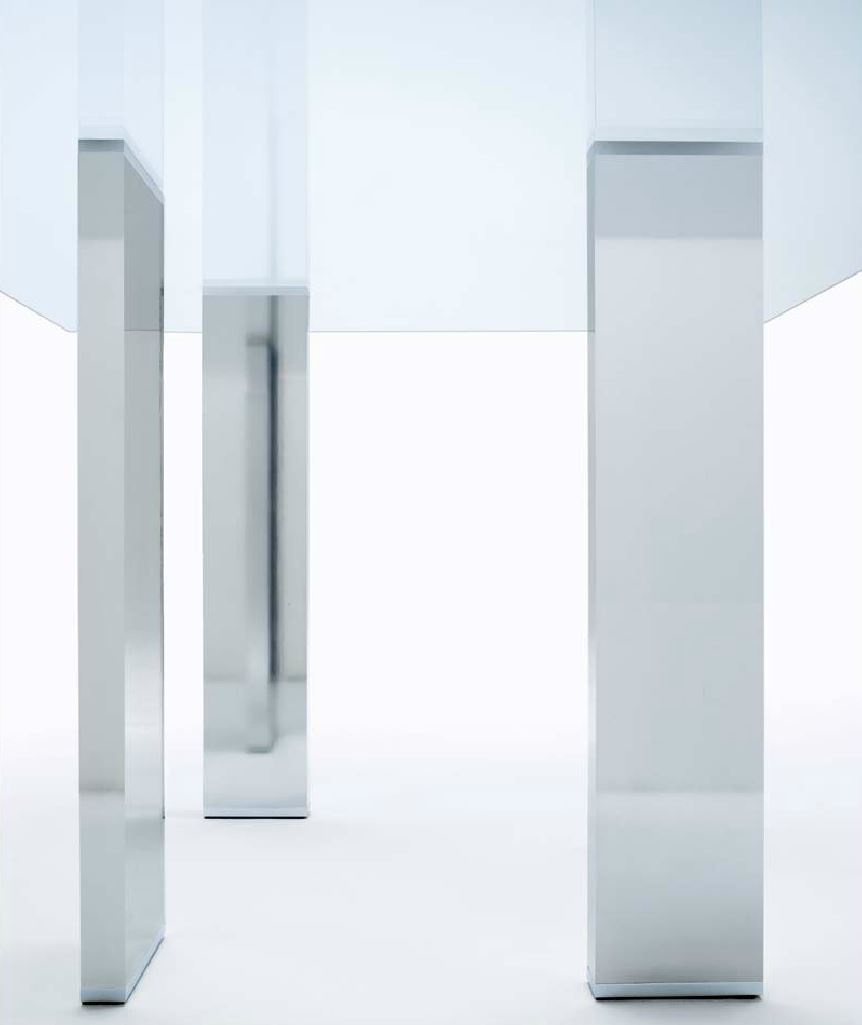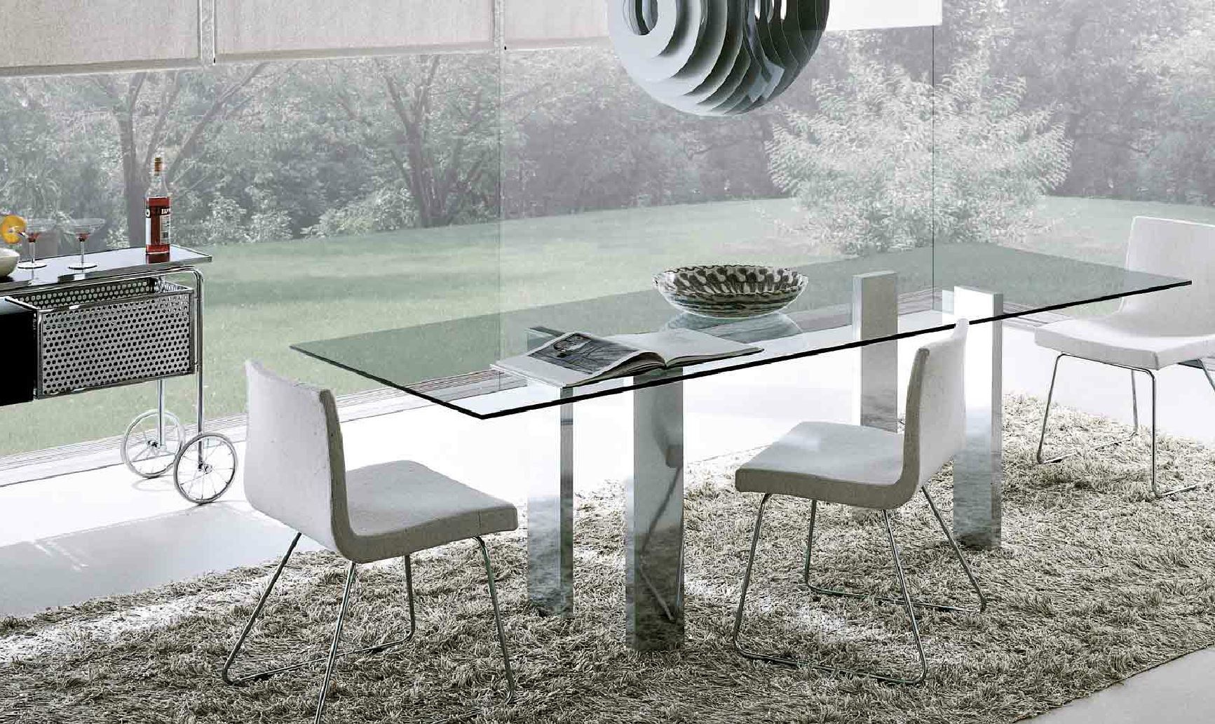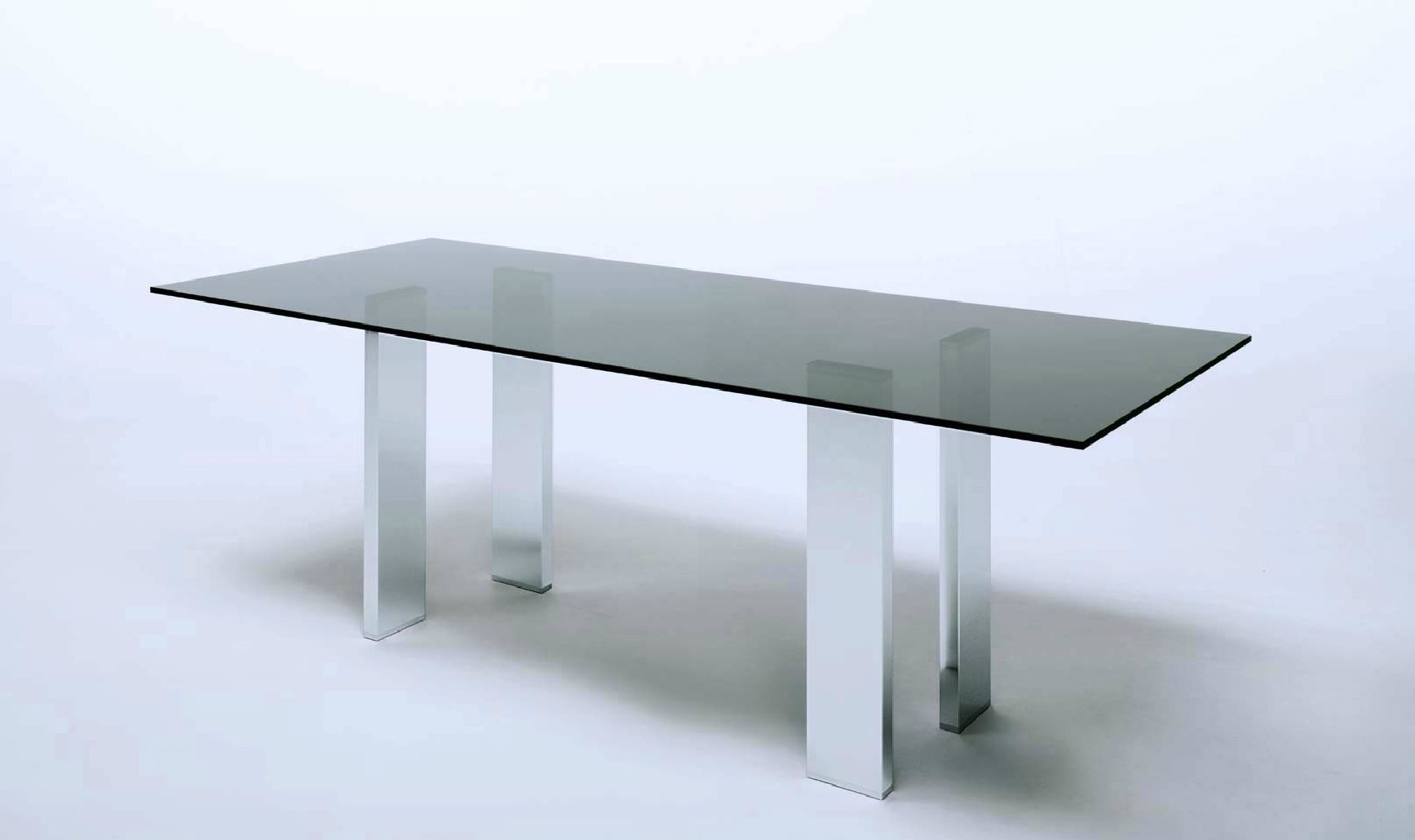 Taul dining table from Italian manufacturer MisuraEmme. Countertop rectangular, tempered transparent/tinted glass. The legs are available in polished aluminum, dark steel, finish walnut or Matt lacquer finish. The style is modern. Harmoniously fit into the interior of a modern dining room. Available also models with oval and square shapes of the table tops.