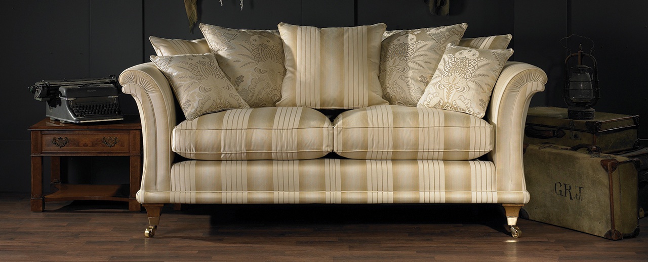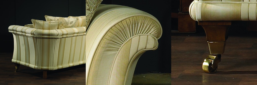 The Amalfi sofa from British producer David Gundry. The frame is made of wood. The filler is produced out of hollofayber and latex. Holofiber is an elastic hypoallergenic material that keeps its shape perfectly and does not leave "holes" after sitting. Upholstery textile fabric according to the manufacturer's catalogue. Available double and triple versions of this model of sofa.
