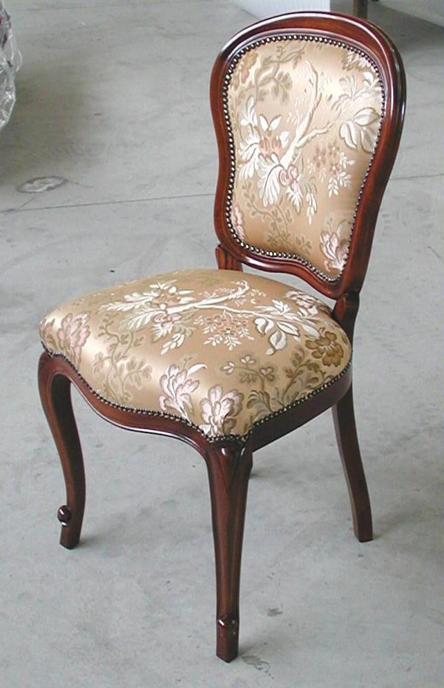 Chair in a classic style from the Italian manufacturer Fratelli Sommacal. The frame of the chair is made of walnut. Finish - walnut veneer. The filler is made of polyurethane foam. Upholstery textile fabric light brown color with a pattern. Finish and upholstery as in the photo.