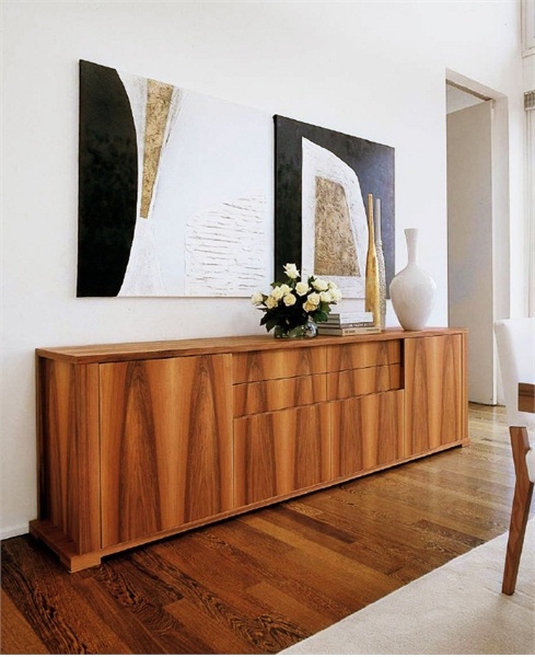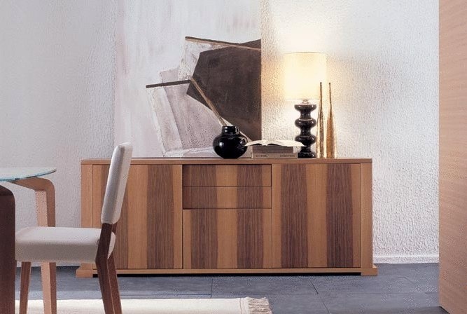 | Description: | Sideboard with hinged doors and / or drawers of solid walnut. There is a shelf of tempered clear glass. |