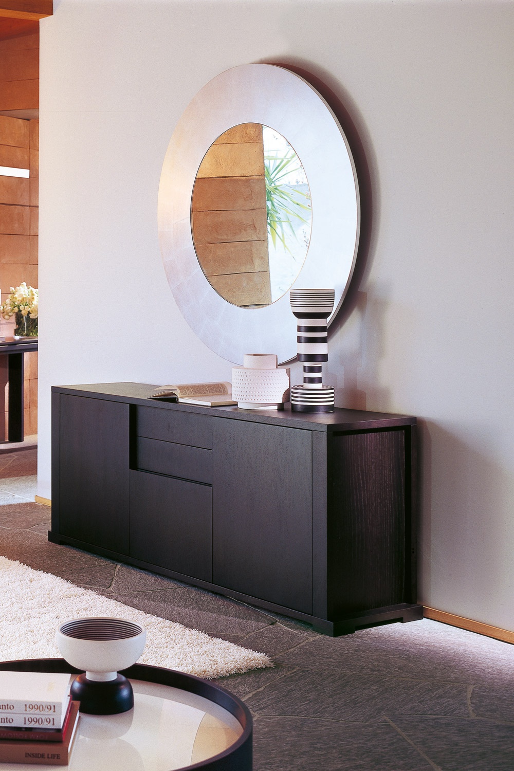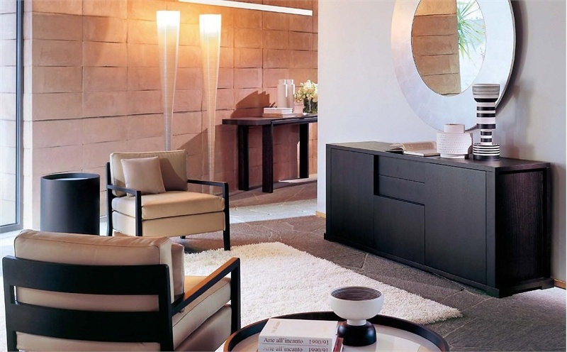 | Description: | Sideboard with hinged doors and solid drawers in the wenge finish. There is a shelf of tempered clear glass. (As pictured) |
