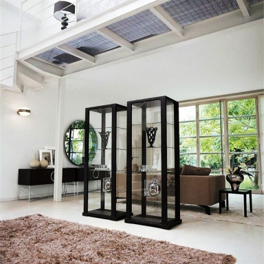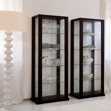 Bryant showcase expo from the Italian manufacturer Porada. Showcase solid oak, stained wenge or natural oak. Door, sides and shelves are made of tempered glass. The window can be painted with an outdoor wood structure.