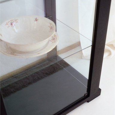 | Description: | Showcase made from solid oak in a wenge finish. Doors and internal shelves in tempered transparent glass. (As pictured) |