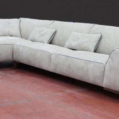 Kong sectional sofa from Italian manufacturer Gamma Aredamenti. The frame is made from wood and plywood. The filler is made of foam and fluff. Legs - made of wood. Upholstery - leather grey (main upholstery - leather Burt F613; edging in leather - Gros Grain col.139). The upholstery is embellished with stitch Capito. Finish and upholstery as in the photo.