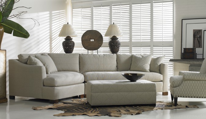 Sofa sectional from American Furniture manufacturer Sherrill. This model is designed in a modern style and includes a double sofa, a triple sofa and corner wedge. The model is available in right and left versions. The frame and legs are made of sustainable wood, textile upholstery, color - light grey; color and texture of upholstery you can choose in the catalog of the manufacturer. Shaped armrests, the additional amount of seat cushions and backrest. By constantly improving furniture company Sherrill Furniture for more than fifty years has been a leader in the manufacture of quality products for the home.