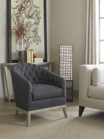 The semi-circular chair from the American manufacturer Sherrill Furniture. A small armchair, designed in modern style, can be used in any room. The frame and legs of the chairs are made of mahogany and gray color scheme. Soft comfortable seat with removable cushion, semi-circular back with finishing Capito smoothly into the arm rests; colour - mouse grey. Options for upholstery you can choose in the catalog of the manufacturer. Available as an option seat with manual trim. By constantly improving furniture company Sherrill Furniture for more than fifty years has been a leader in the manufacture of quality products for the home.
