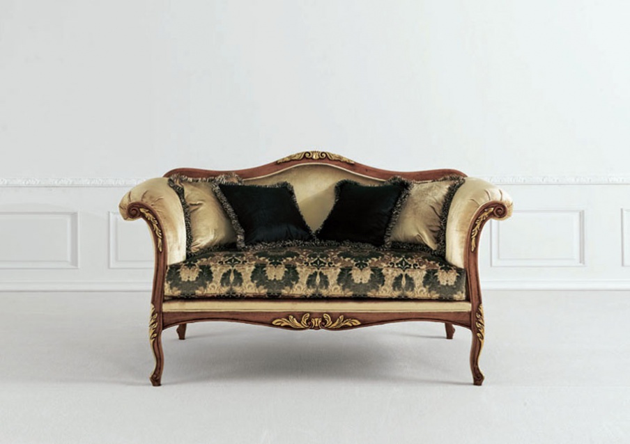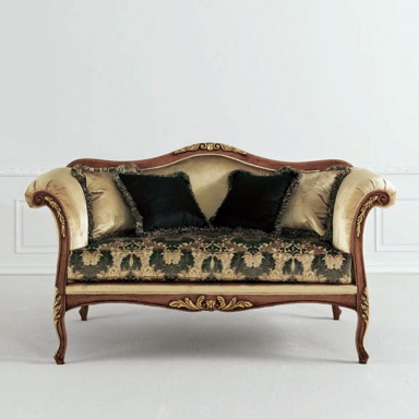 Double sofa Giulietta from the Italian manufacturer Mobilsedia. Model with rounded armrests and shaped backrest. The frame and legs are wood. The upholstery fabric. The color palette in the catalog of the company. Filler - polyurethane foam. Different practicality and elegance.