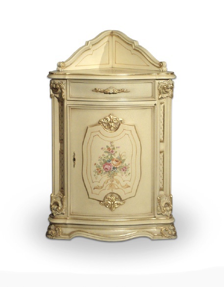 The angle for the dishes from the Italian manufacturer Fratelli Radice. Ivory with a decorative pattern. The frame is solid wood with a lacquer finish. Decorative elements in gilt. Finish as in the photo.