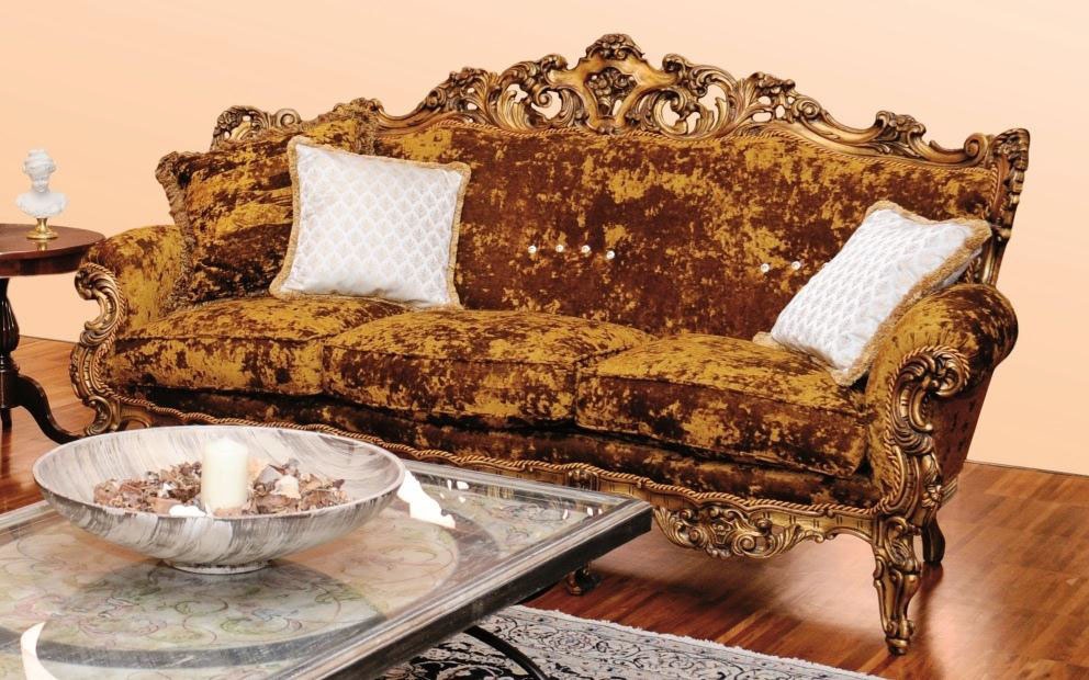 Peter three seater sofa from Italian manufacturer Le Classique. The frame is wooden. Upholstery textile. Color - brown. Internal filling of polyurethane foam. The set includes 3 decorative pillows.