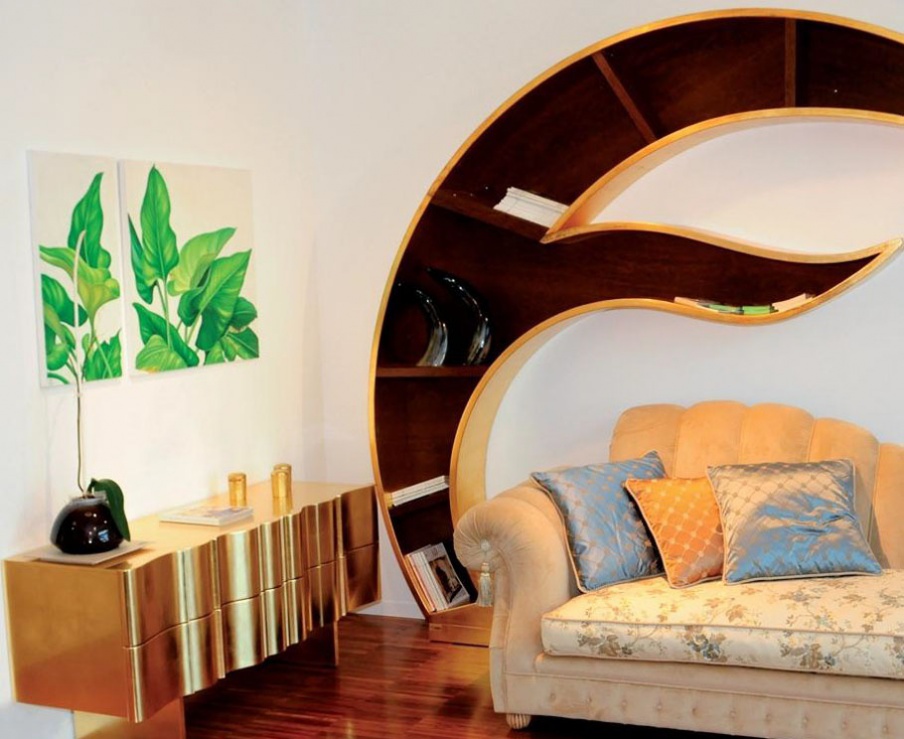 Daybed with a shaped backrest Elena from the Italian manufacturer Le Classique. The frame is made of wood. Upholstery sand color. The filler is not deformable polyurethane foam. Complement the design of three decorative pillows.