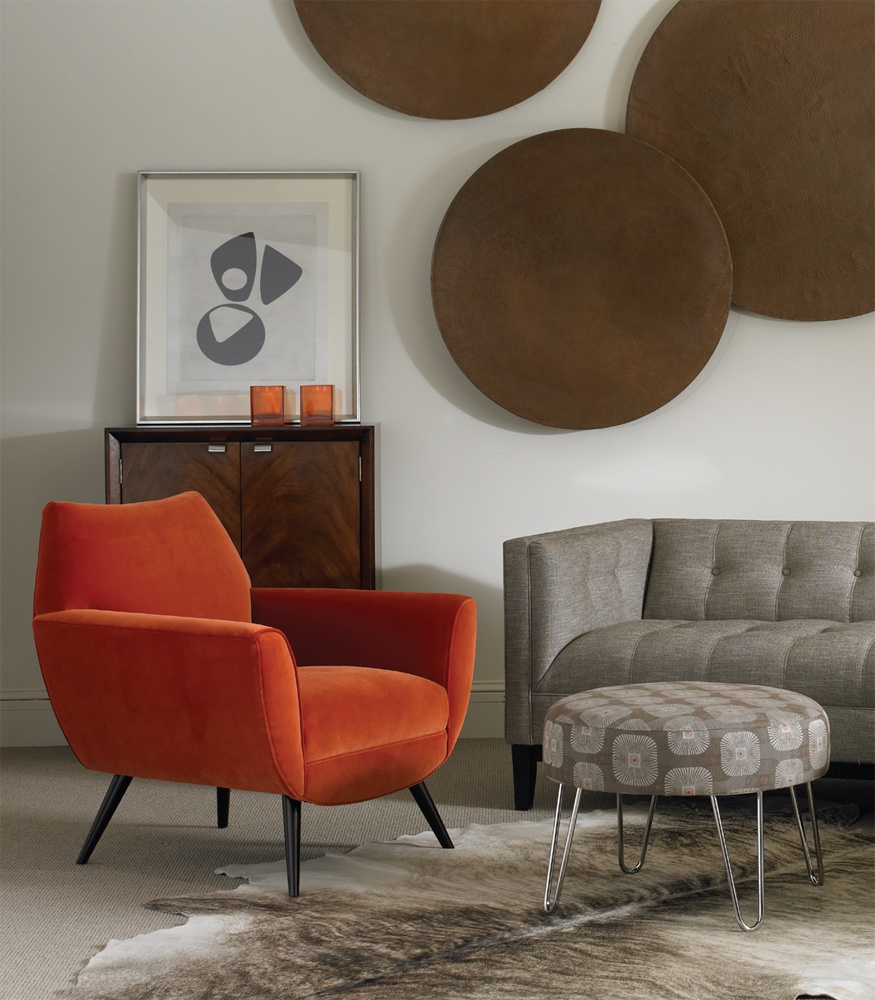 Chair from the American manufacturer Precedent. Easy chair cubic proportions, in the style of avant-garde, can be used in any room. The frame and the chair legs are made of wood in black tones. Seat and shaped backrest with extra volume, padded armrests. Textile upholstery scarlet color will create a bright spot of color and help to place correctly accents in the interior. The company Precedent has combined talent, experience and skill of its employees to create excellent products that decorate Your home.