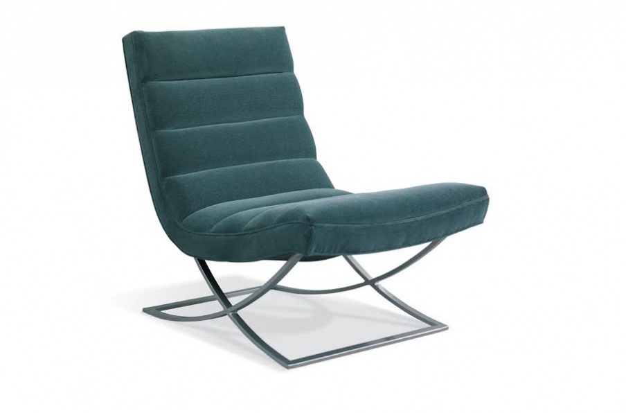 Chair from the American manufacturer Precedent. Easy chair, chaise lounge, designed in the style of postmodernism, would fit well in the living room or terrace, furnished in modern style. The crossed frame and the chair legs are made of metal. Seat and back are quilted mattress segments with additional volume, the armrests are missing, textile upholstery blue-grey color. The company Precedent has combined talent, experience and skill of its employees to create excellent products that decorate Your home.