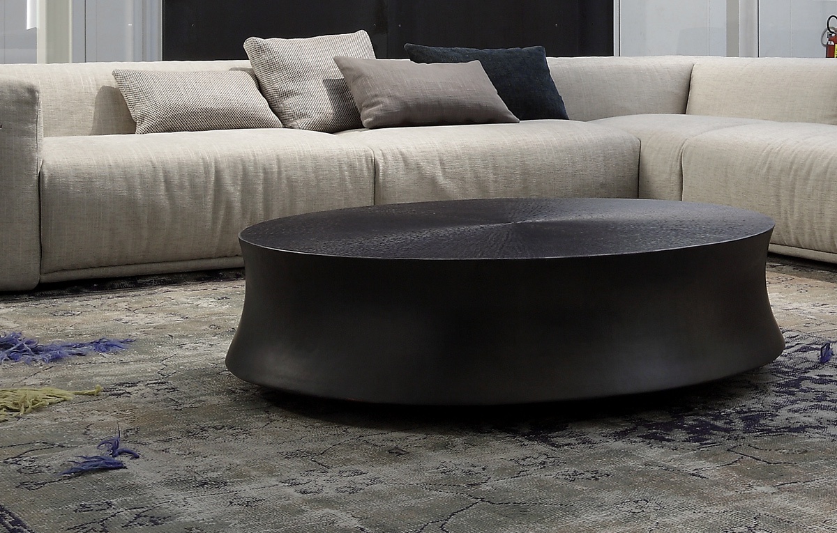 The Soori coffee table from Italian manufacturer Poliform. Table is original frame, rounded shape in the form of a wooden slice. Material - metal , painted in bronze.The perfect solution for a living room in modern style.