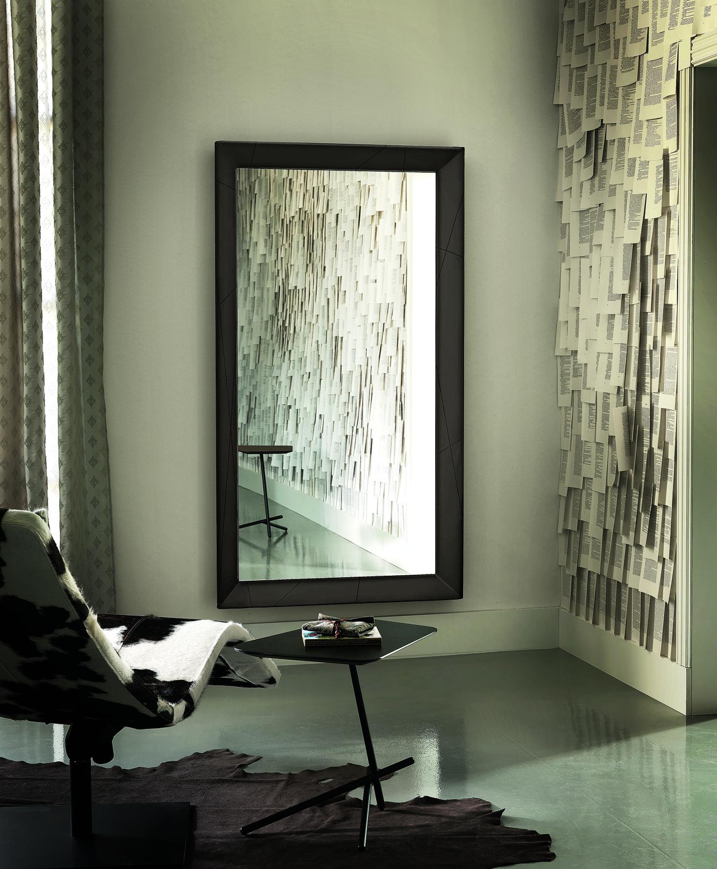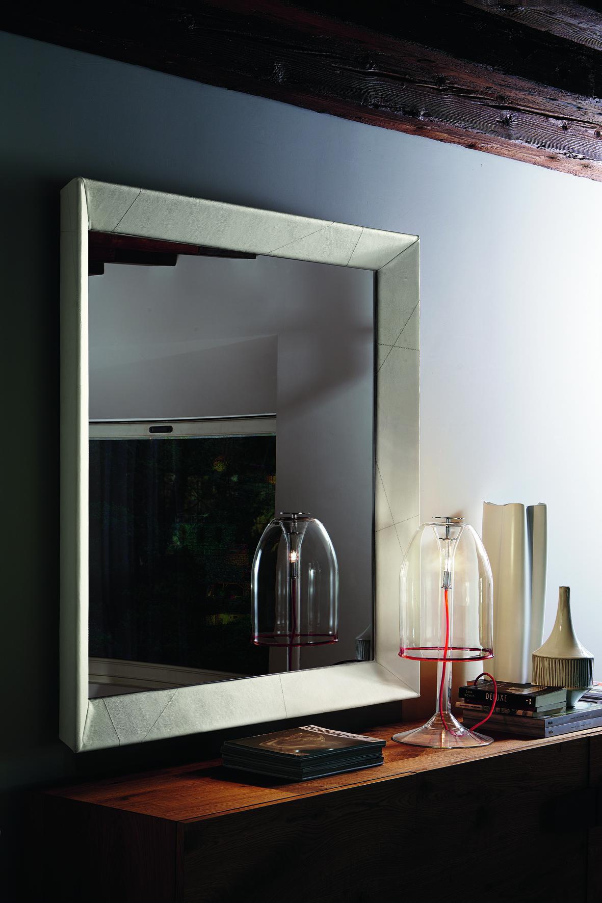 Taxedo mirror from Italian manufacturer Cattelan Italia. The model is square or rectangular in the modern style. Frame in wood with leather upholstery. Colours in stock.