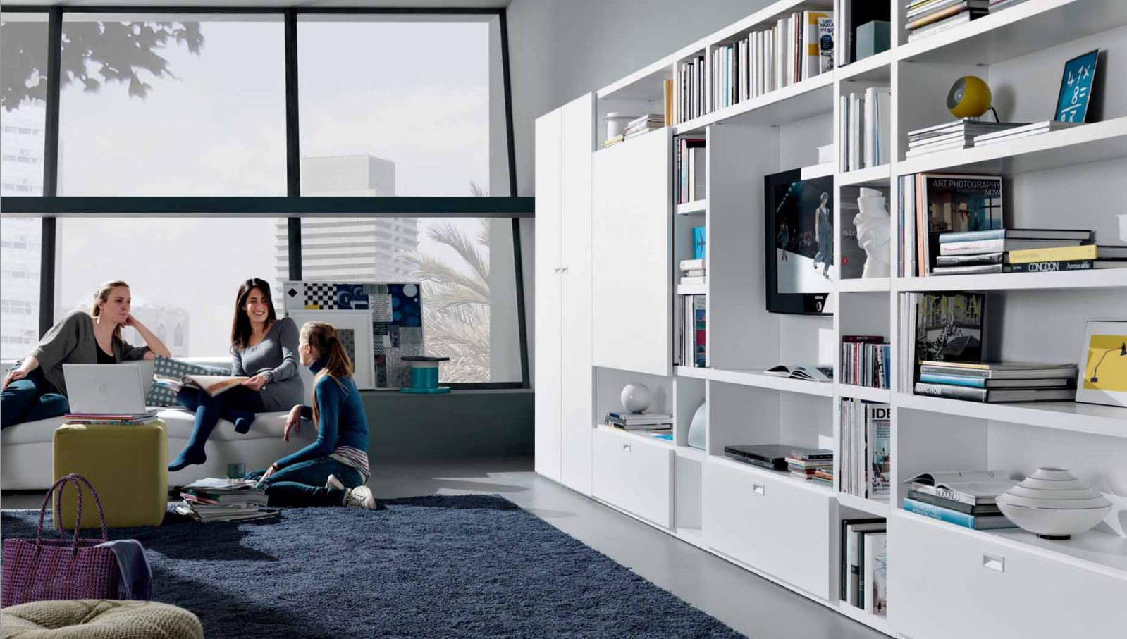 Rack Fusion 01 from Italian manufacturer MisuraEmme. Designed in a contemporary style. The hull, shelves, doors made of natural wood. Finish - white lacquer water-based. The frame is equipped with sliding shutters. Provides a niche for TV and other multimedia equipment. The rack can be installed in any room, as it provides a versatile solution for storage.