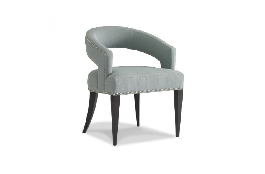 Chair small armchair from the American manufacturer Precedent. Upholstered chair with armrests designed in the style of postmodernism, loose lines and unexpected shapes which fit perfectly into modern interior living room or dining room. The frame and legs are made of wood, back leg bent, the finish is espresso. Seat, and a small figure back, blending smoothly into the armrests upholstered with textile in a grey-blue colour scheme; also available the model with the black leather. Optional - finish back and seat on the perimeter of the decorative buttons. The company Precedent has combined talent, experience and skill of its employees to create excellent products that decorate Your home.