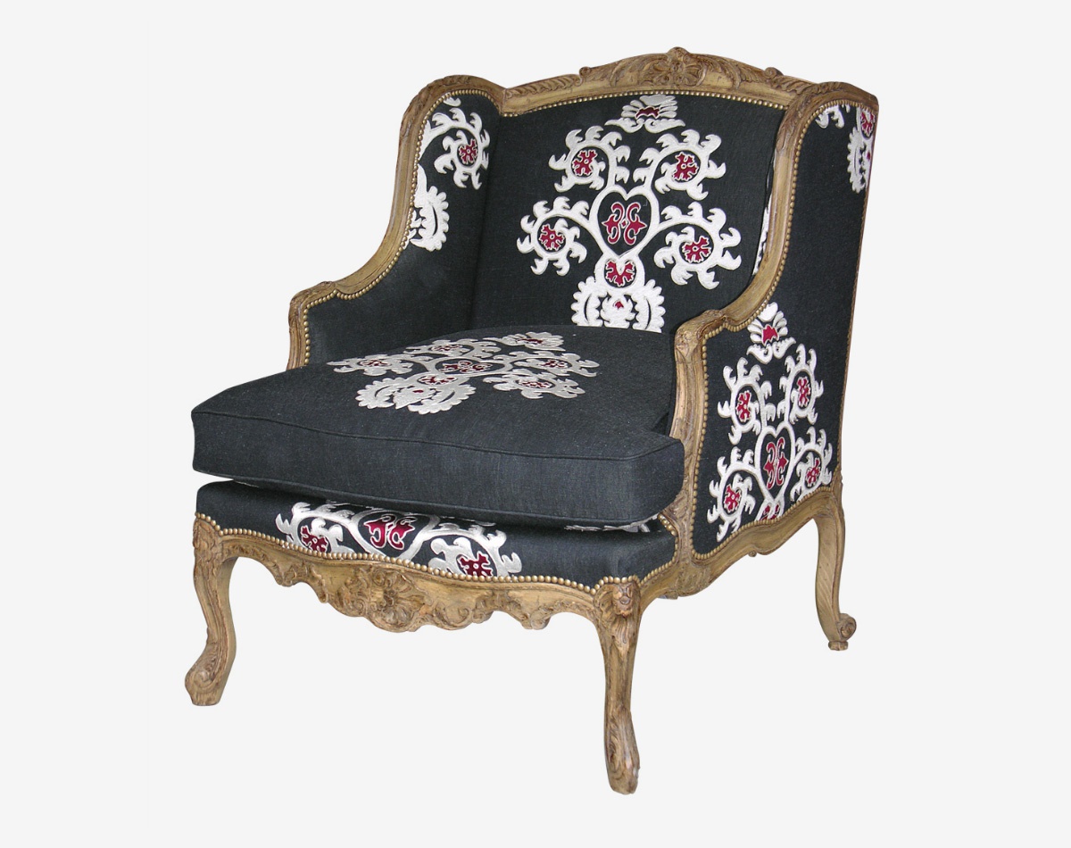 | Description: | The Regency Bergere chair from French manufacturer Moissonnier. Frame - wood. Upholstery - fabric Metaphores. |