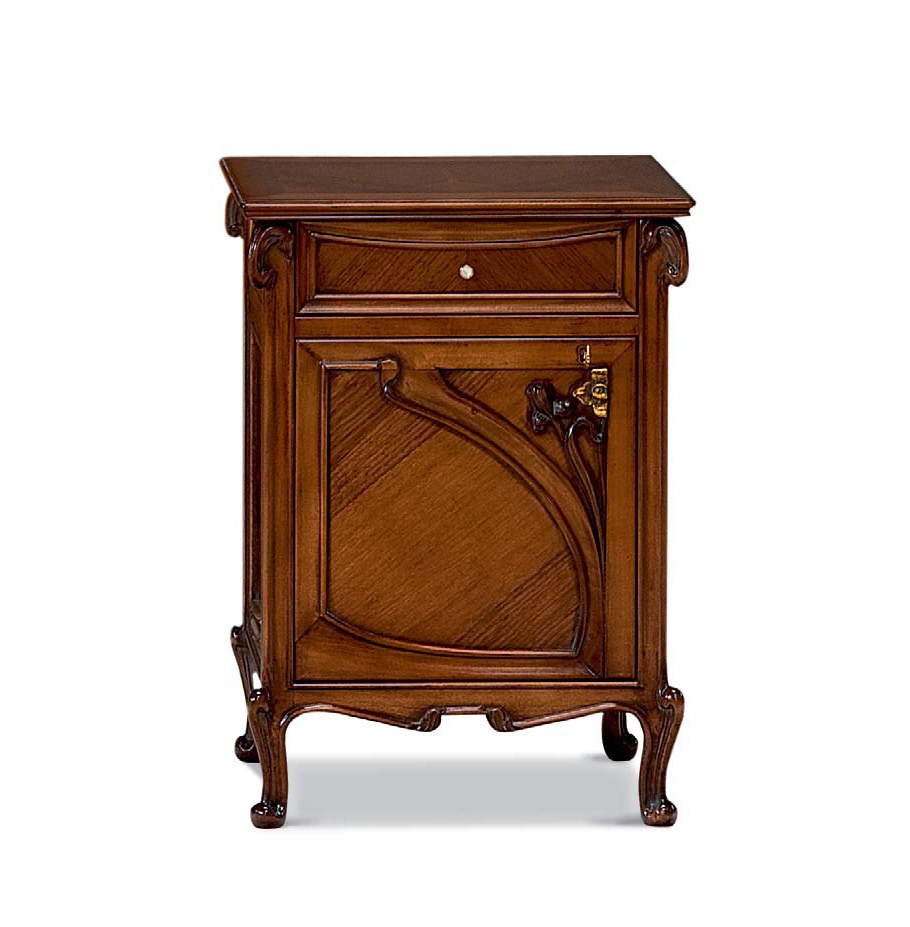 Bedside table Liberty from the Italian manufacturer Medea. The frame is made from natural wood and veneer. The decoration is hand carved. Finish - lucidato. Cabinet color natural wood.