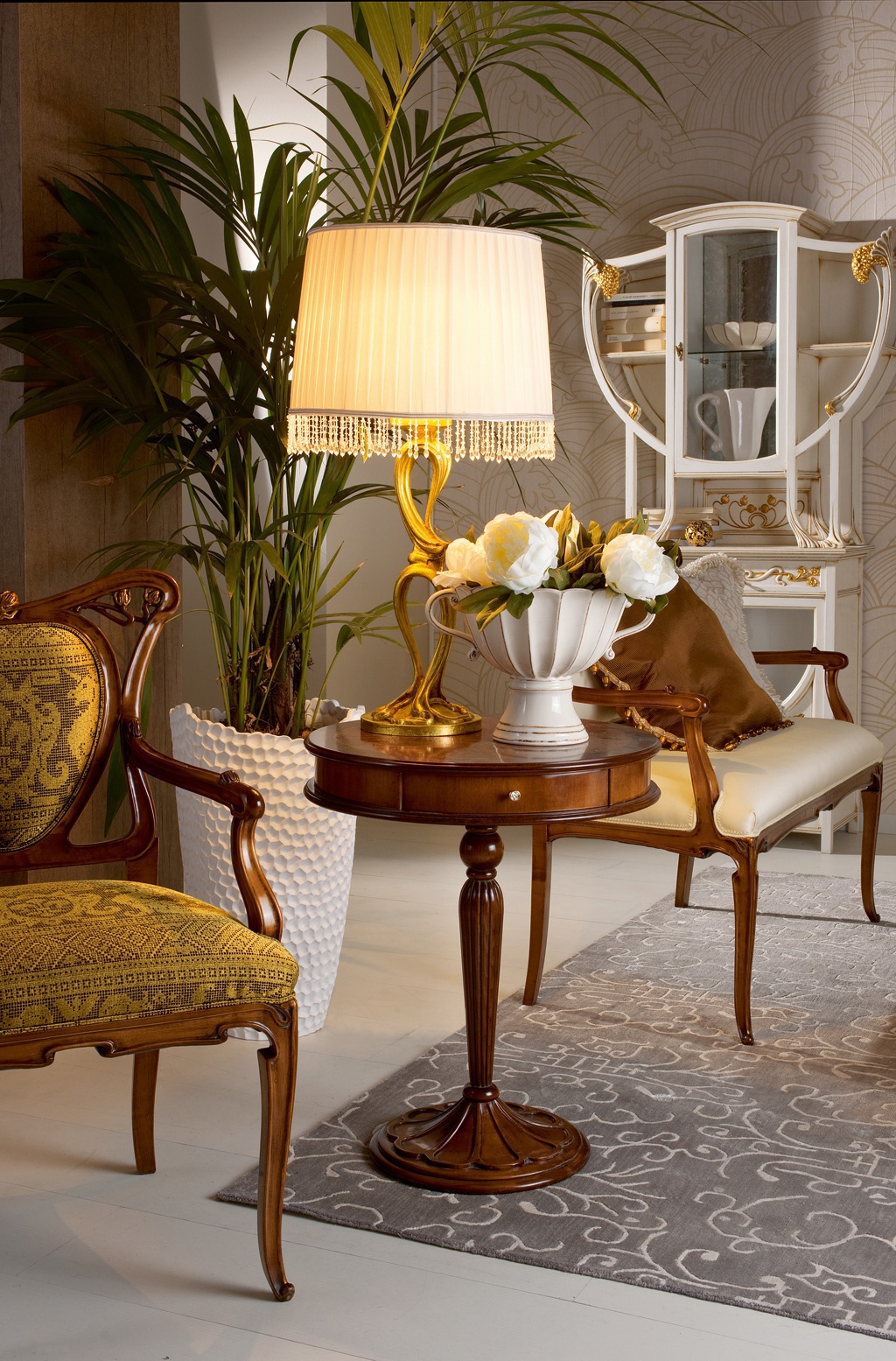 | Description: | Liberty coffee table from the Italian manufacturer Medea. Table fully made of wood. Support and base are decorated with carvings. Model round shape equipped with drawers. |