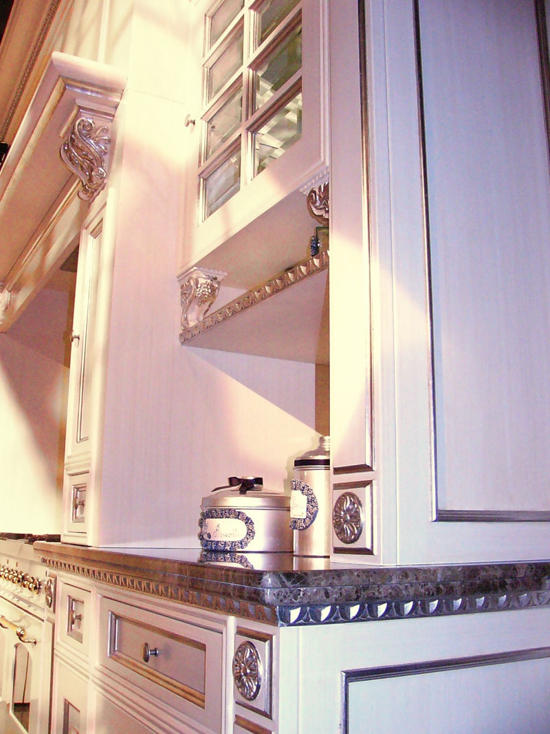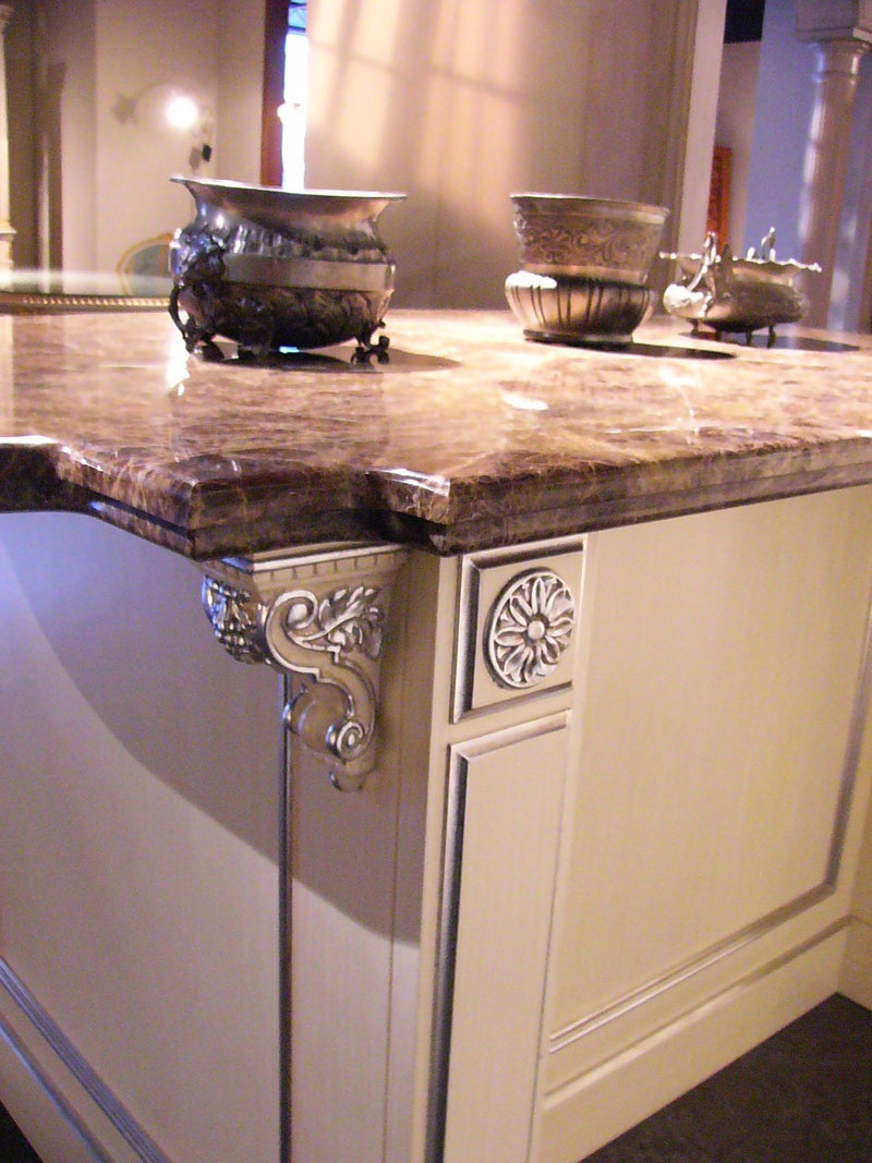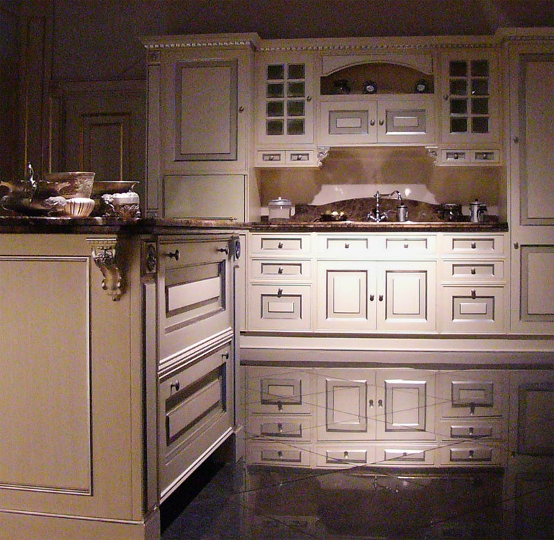 kitchen: natural wood the facade: ash the facade: beech the facade: walnut tree the facade: cherry the sides of the boxes: steel handles: brass countertop: marble details: carved carved details: gilding carved details: silver plated the facade: patina the facade: lacquered |