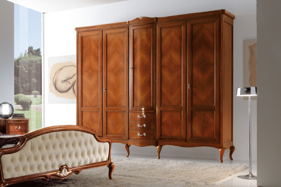 Wardrobe from Portuguese producer Giorgio Casa. The model includes sections with hinged doors and drawers. The frame is made from solid wood. Finish to be selected from the range of the company.