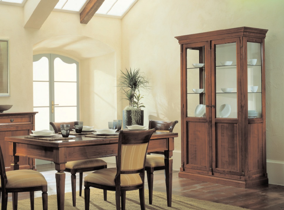 Showcase from Italian manufacturer Avenanti. The frame is made from wood with veneer surface. Finish as in the photo. Model with glass doors and side panels. Fittings - metal.