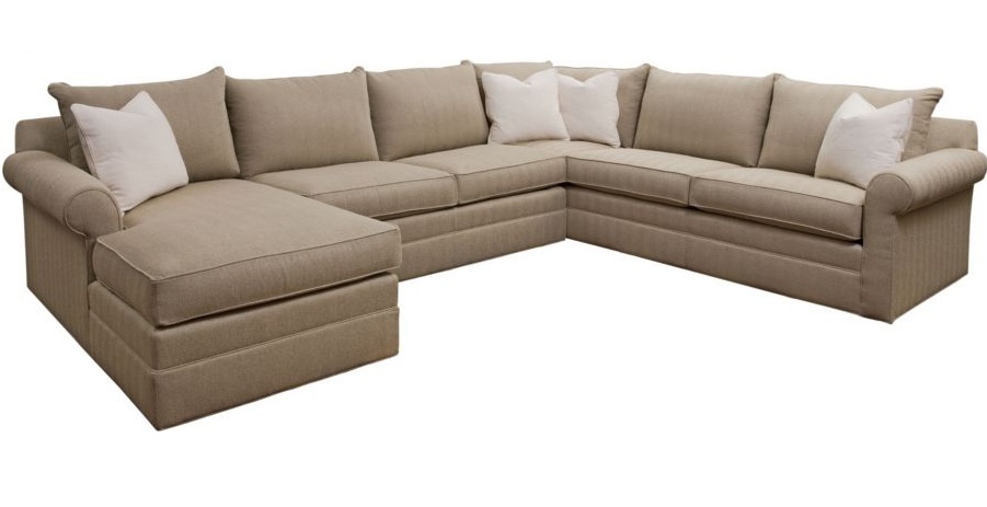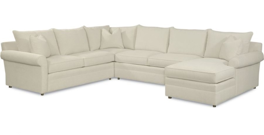 The Concord sectional sofa collection Upholstery/Leather from an American manufacturer Thomasville. Comfortable corner sofa, made in classic style, to decorate the interior of any room. The sofa includes four positions: left double sofa, corner, right double sofa without armrest and chaise chaise. The frame and legs are made of black wood. Roll the arms bent to the sides, back and seat cushions formed with extra volume; upholstery textile, milky-white, as a filler used in premium fiber. Three standard removable cushion. Packaging options upholstery and trim can be selected in the catalog of the manufacturer.
