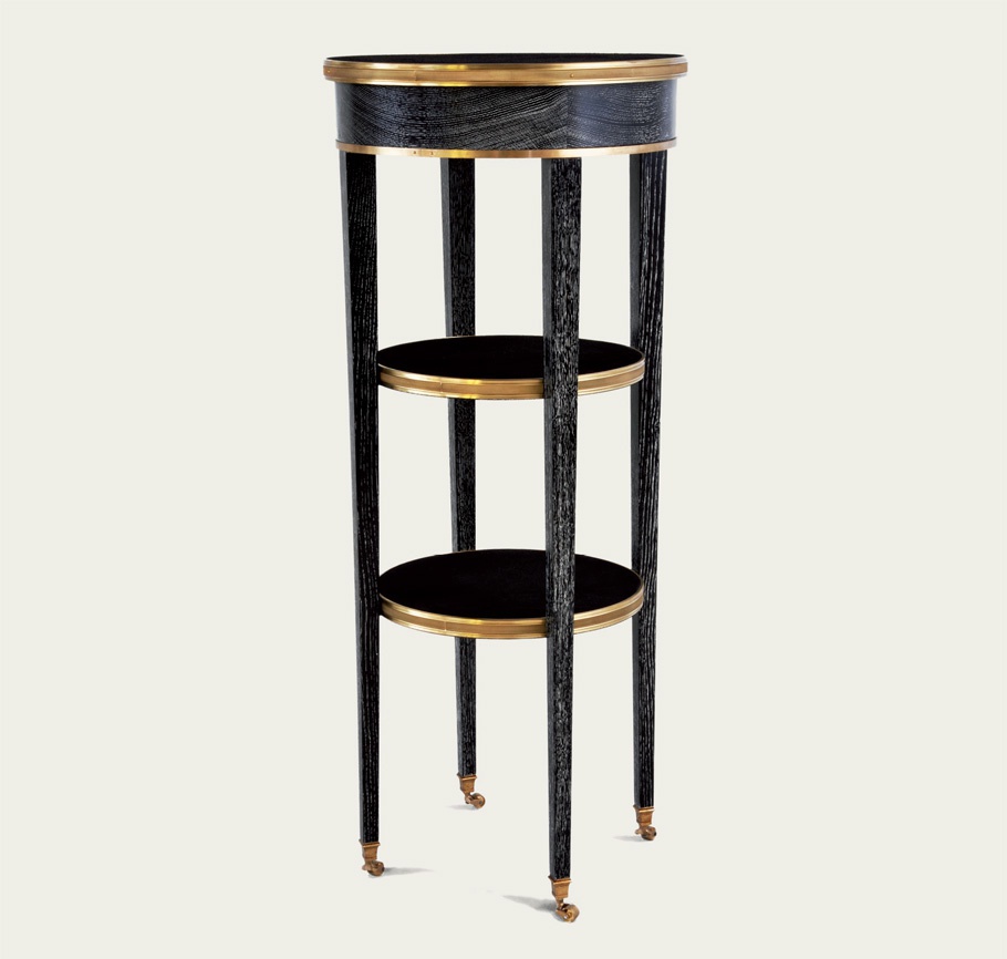 | Description: | High Io table Haute from the French manufacturer Pierre Collection. The frame is made of wood. Surface: black glass. Finish: oak. Finish: Dark Ceruse. Entourage: Brass. |