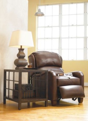 Chair the Donovan recliner from Leather Choices collection from the American manufacturer Thomasville. Functional leather chair traditional English silhouette will enrich any living room, library or study. Thanks to its design, the recliner chair adjusts to the anatomical features of the body. Comfortable sectional with back flaps and a small lumbar cushion, padded armrests, loose seat cushion has a convex shape. The frame and tapered legs made of wood, padding and leather; this chair is made in brown with splotches of colors. Options upholstery and trim can be selected in the catalog of the manufacturer.