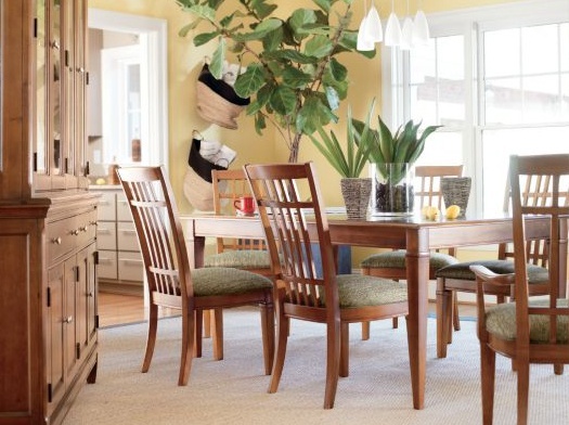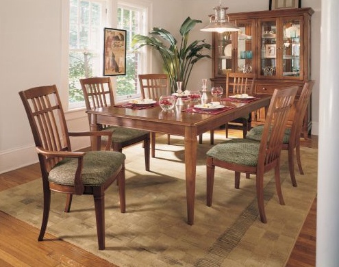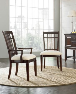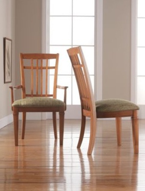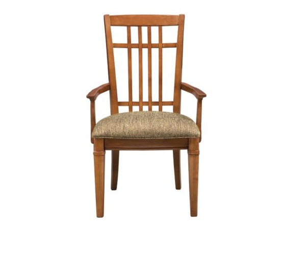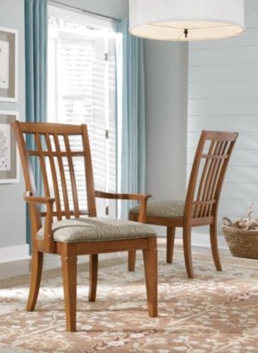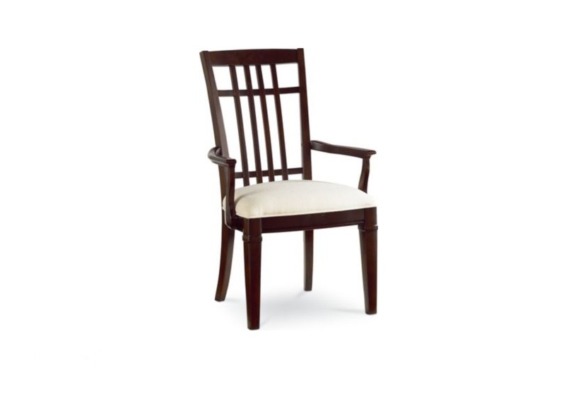 The dining chair from the Bridges 2.0 collection from an American manufacturer Thomasville. Carver chair with upholstered seat traditional silhouette and versatile trim made in a classic style and is suitable for traditional or modern interior; it can be used in the dining room of a country cottage or in the interior of the loft style. You can choose with arms or without them, with the warm wood finishes of cherry or mocha. Carved legs, slightly bent back, rounded armrests, the backrest is designed in the form of a lattice. Finish options and upholstery seats can be selected in the catalog of the manufacturer.