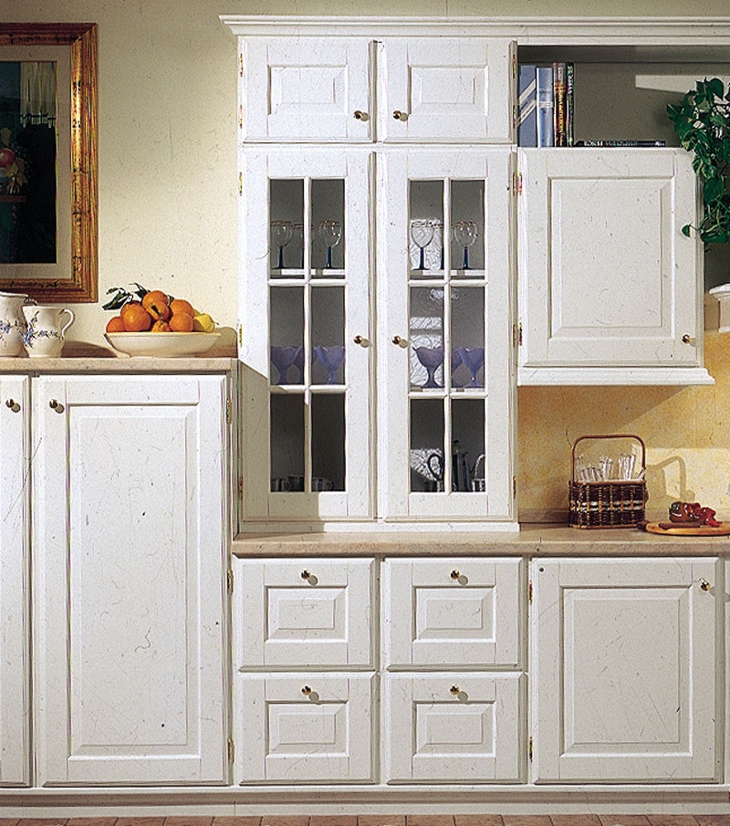 Set for the kitchen Canova from the Italian manufacturer Cadore. The Cabinet is made of solid wood. Sash glazed and deaf. Accessories metal. The marble countertop. Made in the classic style.
