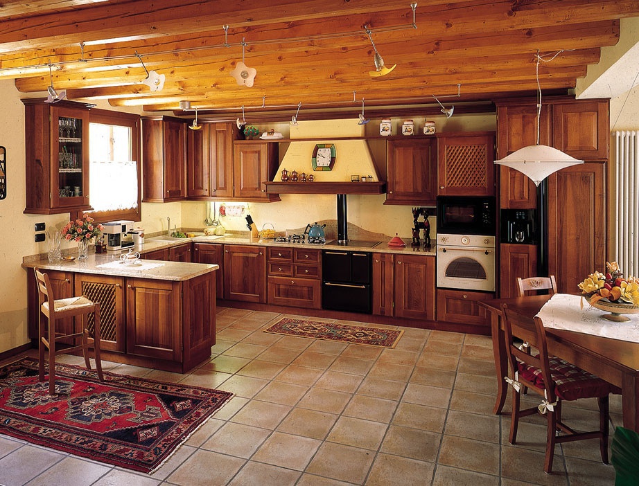 Set for the kitchen Canova from the Italian manufacturer Cadore. Corner model on a frame of solid wood. Option finishes in the catalog of the company. Handle round shape made of metal. Countertop - marble. Equipped with a hood.