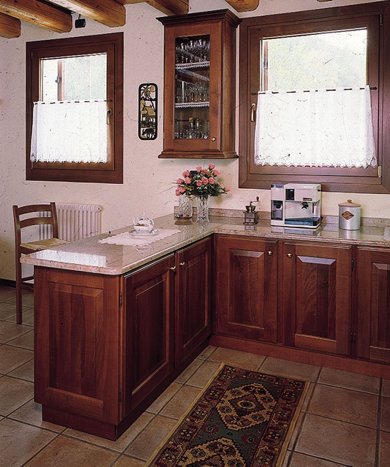 the basis: natural wood the facade: solid wood the facade: walnut tree countertop: granite elements of the fa?ade and handles: brass the facade: Matt |