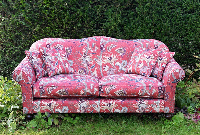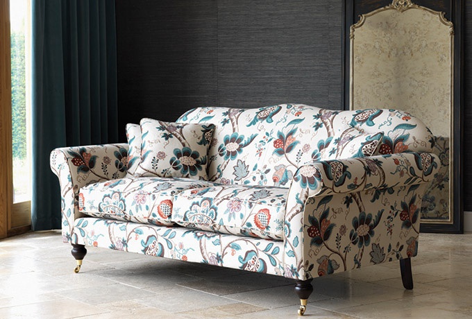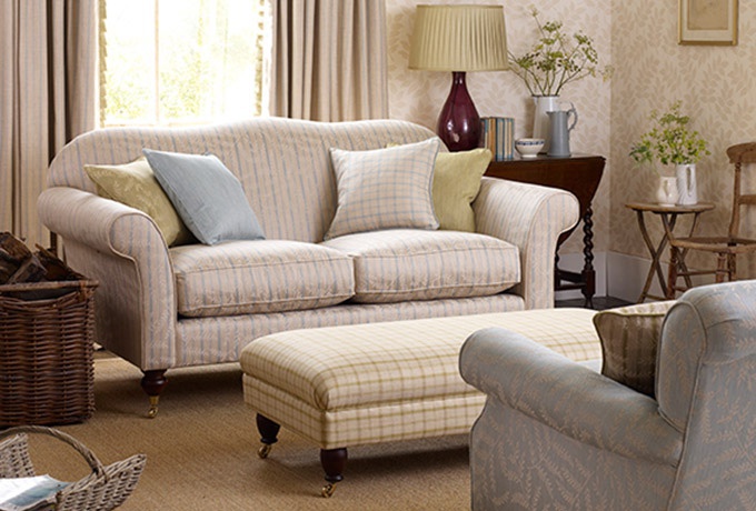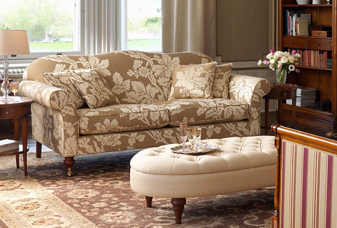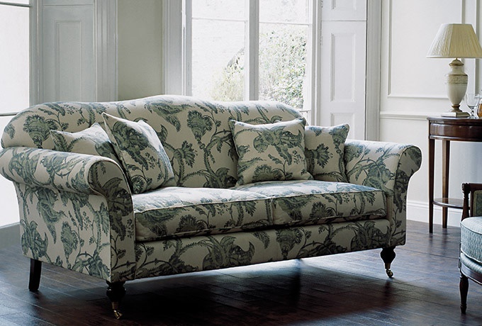 Sofa Hinton from British producer Wesley Barrelly. Frame of sofa is made of wood. Upholstery textile fabric based on manufacturer's catalogue. The included decorative pillows. Available double, triple and quadruple modification of this model. It is also possible to manufacture the sofa Hinton on the size of the customer.