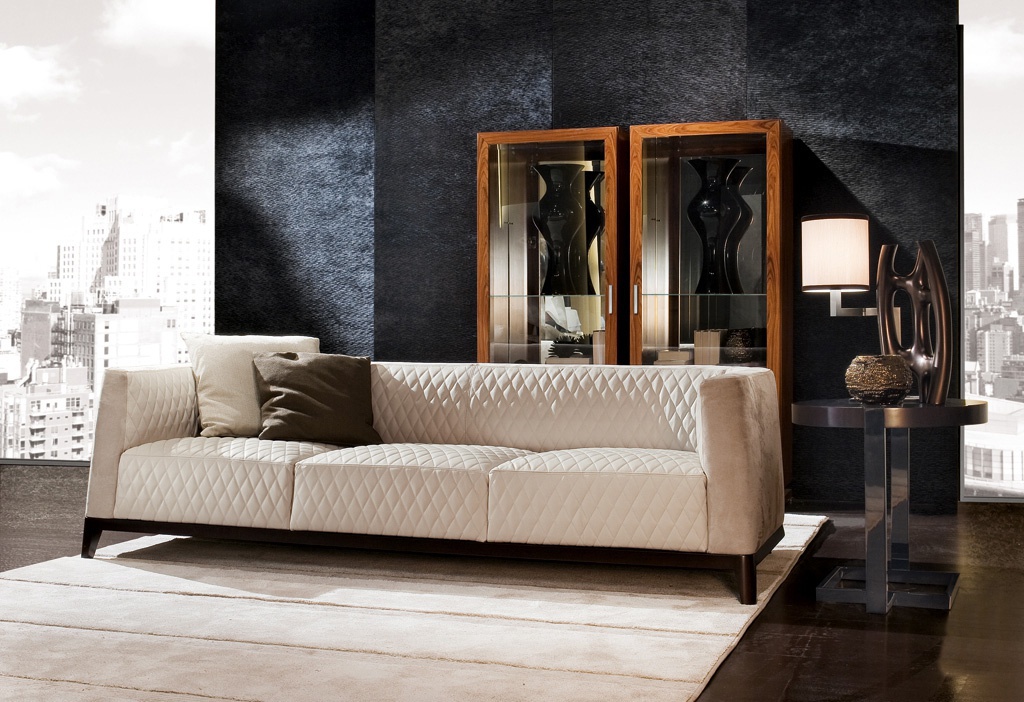 The New Chester sofa from Italian manufacturer Mobilidea. Triple model. The frame is made of wood. The finishing - varnish. The upholstery is made of textile fabric or leather from the company portfolio. Filler - polyurethane foam. Sofa will fit perfectly in the living room in art Deco style.