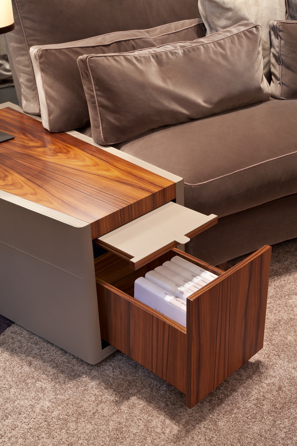 | Description: | Maxim pridivanny table from the Italian manufacturer Mobilidea. Original model with a large drawer and a pull-out panel for serving. The body is made of wood. Finishing of wood-Palisander. |