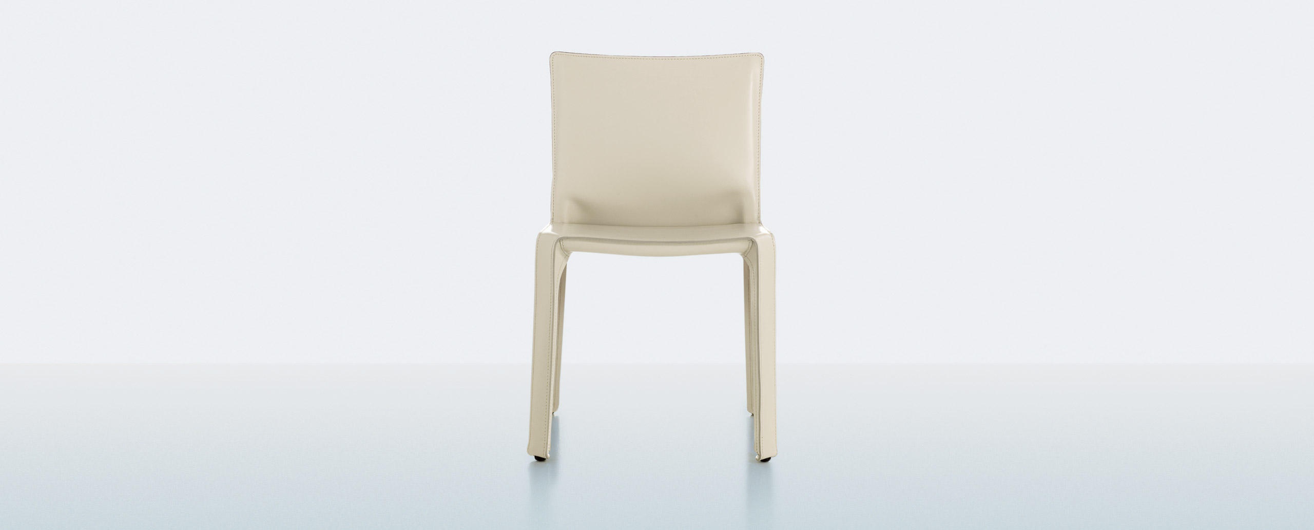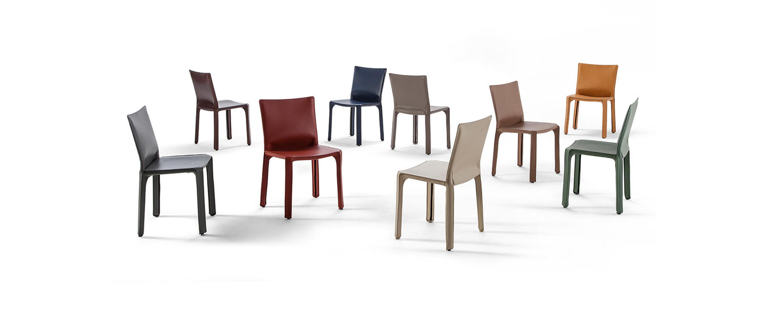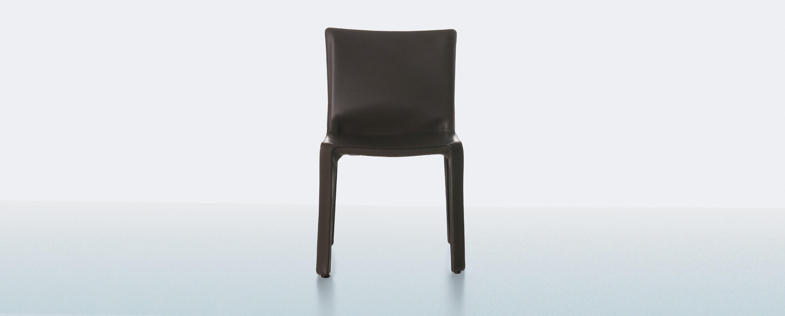 412 Cab chair from the Italian manufacturer Cassina. Chair with metal frame, upholstered in leather. Color in stock.